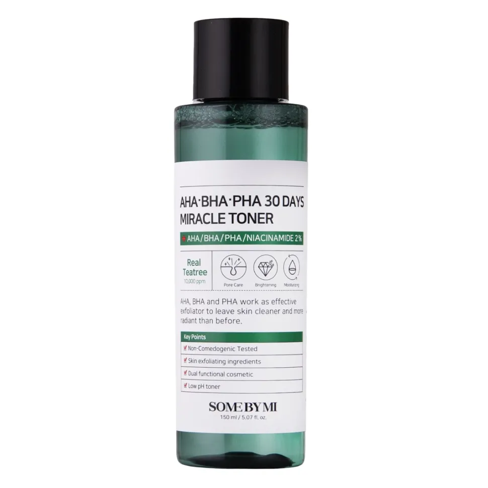 Some By Mi – AHA BHA PHA 30 Days Miracle Toner – to oczyszczający tonik z kwasami AHA, BHA oraz PHA. Kwasy AHA, BHA i PHA delikatnie usuwają martwe komórki naskórka, oczyszczają ujścia gruczołów łojowych oraz regulują wydzielanie sebum. Formuła toniku jest oparta na naturalnych ekstraktach roślinnych, bogatych w naturalne kwasy owocowe oraz posiadających właściwości przeciwzapalne, kojące, łagodzące podrażnienia i przyspieszające gojenie. Działanie przeciwtrądzikowe tonera zostało zbadane i potwierdzone przez Koreańską Agencję ds. Żywności i Leków (KFDA). Tonik jest częścią serii 30 Days Miracle, która poprawia stan skóry trądzikowej, tłustej i zniszczonej.