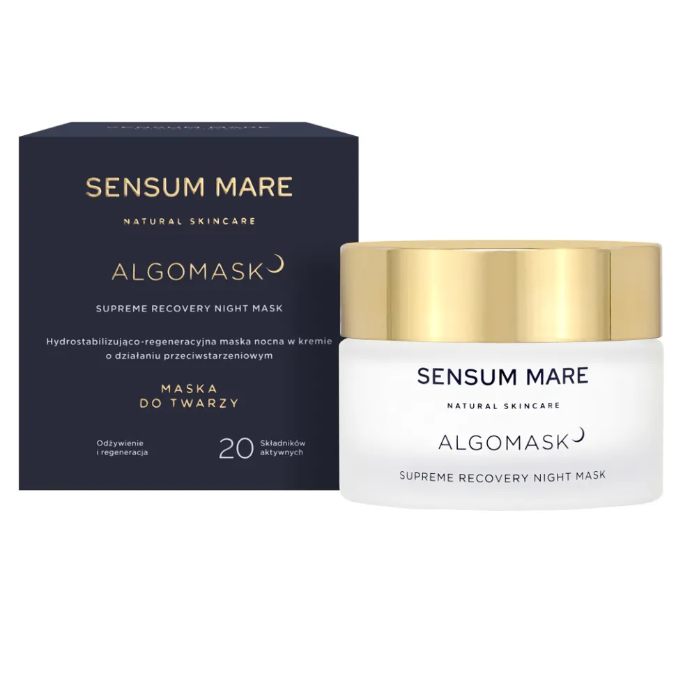 Hydrostabilizująco regeneracyjna maska nocna w kremie ALGOMASK stanowi ukoronowanie innowacji i najwyższej jakości kosmetyków naturalnych SENSUM MARE. Bogata formuła oparta na 20 składnikach aktywnych posiada silne właściwości nawilżające i regeneracyjne, sprawdzi się u osób poszukujących zaawansowanych i bogatych receptur.