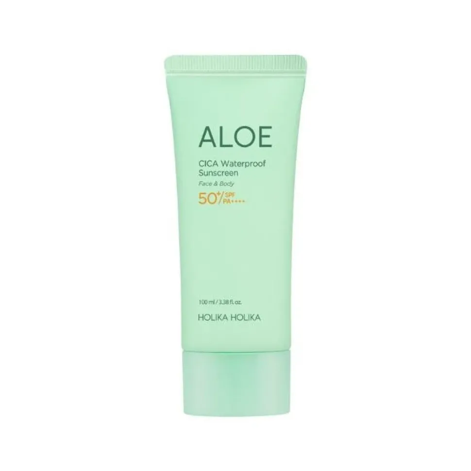 Holika Holika Aloe Cica Waterproof Sunscreen SPF 50+ PA++++ to innowacyjny krem przeciwsłoneczny nowej generacji, który łączy maksymalną ochronę UV z intensywną pielęgnacją skóry wrażliwej i odwodnionej.