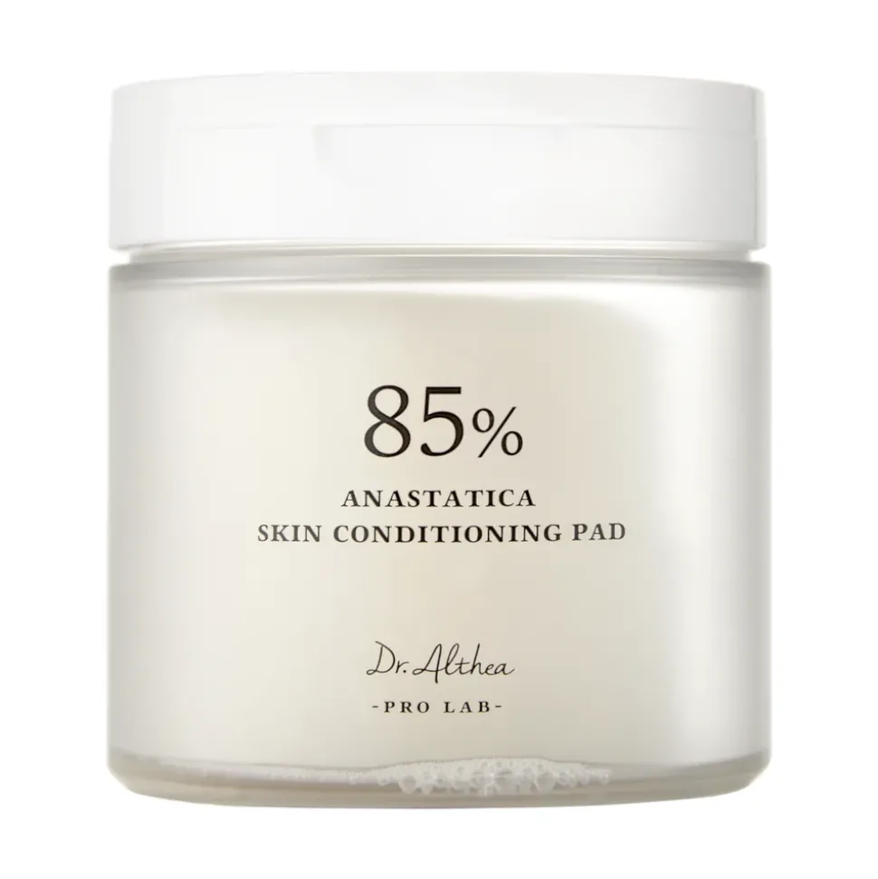 Dr. Althea – Anastatica Skin Conditioning Pad – płatki do twarzy. 85% składu stanowi ekstrakt z róży jerychońskiej, który silnie nawilża i koi skórę, przyspieszając proces regeneracji. Olejek rumiankowy oczyszcza skórę i działa przeciwzapalnie, minimalizując powstawanie wyprysków i podrażnień, a dodatek alantoiny i kwasu hialuronowego dba o prawidłowe nawodnienie cery.
