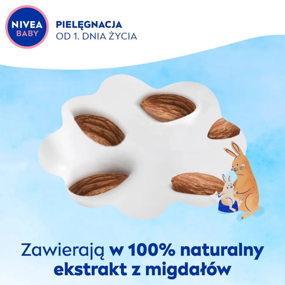 NIVEA BABY Toddies Chusteczki biodegradowalne o wielofunkcyjnym zastosowaniu skutecznie, ale łagodnie oczyszczają buzię, rączki i okolice okołopieluszkowe dziecka. Zaprojektowane tak, aby wspomóc proces nauki samodzielnego korzystania z toalety lub nocnika. Zawierają w 100% naturalny ekstrakt z migdałów wykonane w 100% z włókien roślinnych. Stworzone tak, aby minimalizować ryzyko alergii*. Formuła wegańska i biodegradowalna*, nie zawiera mikroplastiku**. Tolerancja dla delikatnej i wrażliwej skóry niemowląt i dzieci potwierdzona dermatologicznie. Produkt rekomendowany przez Instytut Centrum Zdrowia Matki Polki.