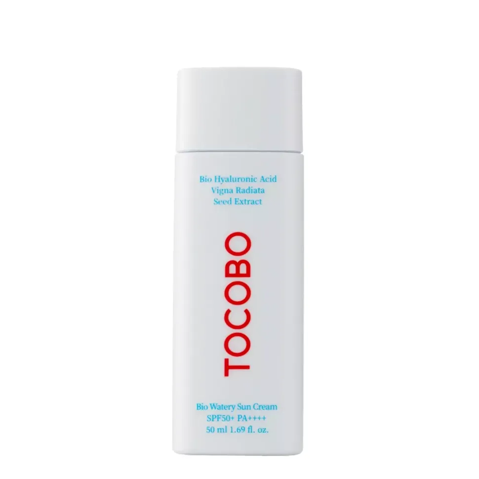 Tocobo Bio Watery Sun Cream – SPF50+ PA++++ to żelowy krem do twarzy z filtrem, który zapewni wysoki poziom ochrony dla Twojej twarzy przed promieniowaniem UVA i UVB dzięki stabilnym filtrom chemicznym. Może być stosowany jako baza pod makijaż lub samodzielnie.