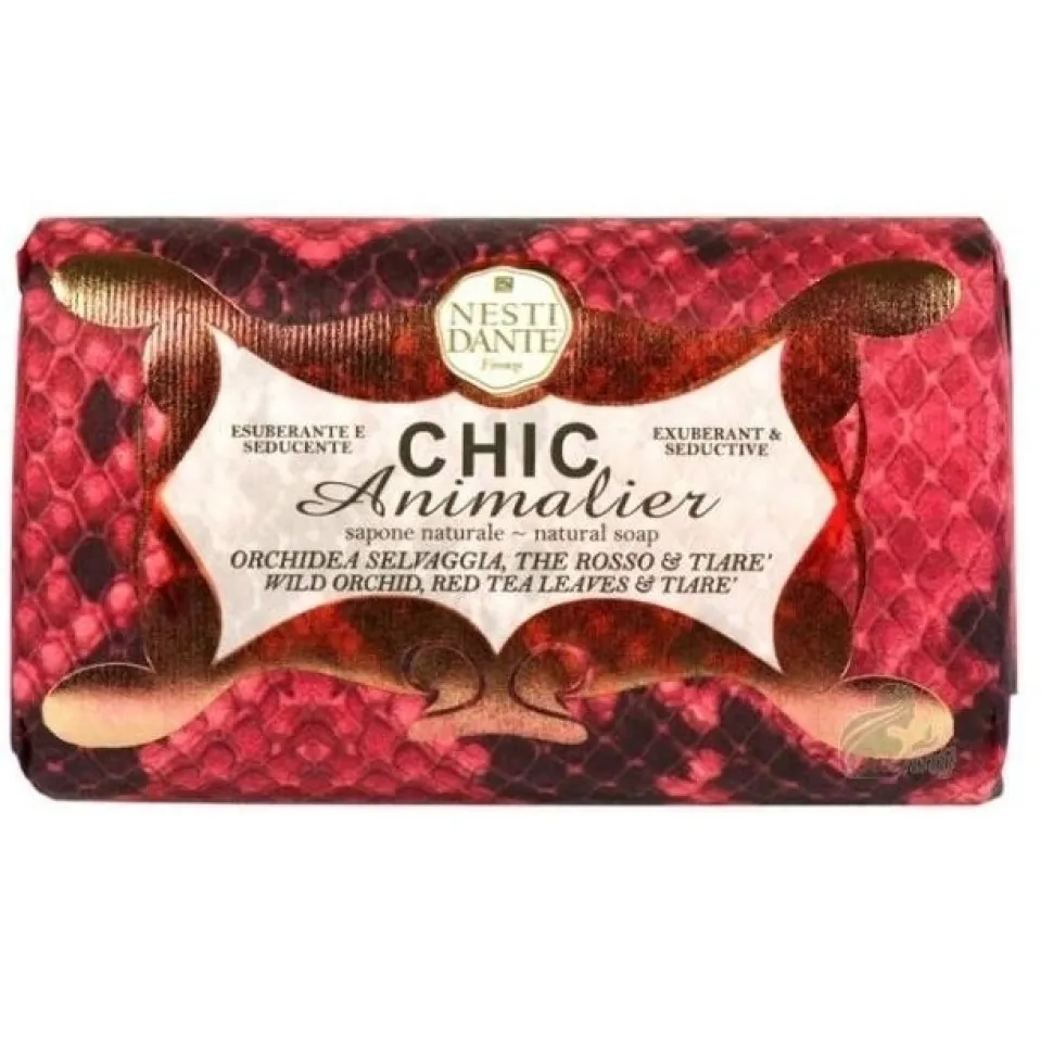 Chic Animalier Czerwony Pyton to mydło toaletowe stworzone przez markę Nesti Dante. Mydło charakteryzuje się recepturą przepełnioną naturalnymi składnikami oraz wyjątkowym zapachem. Pozostawia skórę odświeżoną.
