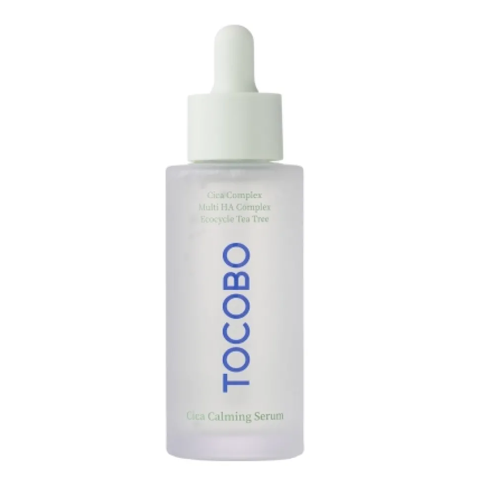 Tocobo – Cica Calming Serum – serum o intensywnym działaniu przeciwzapalnym i lekkiej wodnistej konsystencji. Produkt rekomendowany dla każdego typu cery w szczególności dla skór suchych i podrażnionych. Zawiera ekstrakt z wąkroty azjatyckiej oraz substancje z niej wyizolowane t.j. azjatykozyd, kwas azjatykowy oraz kwas madekasowy, które silnie regenerują skórę, przywracają jej równowagę, zmniejszając zaczerwienienie i łagodząc. Dodatek trehalozy wraz z kompleksem 8 form kwasu hialuronowego głęboko nawilża skórę, nadaje jej elastyczności i jędrności, jednocześnie otulając ją warstwą ochronną. Całość wzbogaca ekstrakt z liści drzewa herbacianego o właściwościach przyspieszających gojenie się ran czy wyprysków. Produkt wegański.