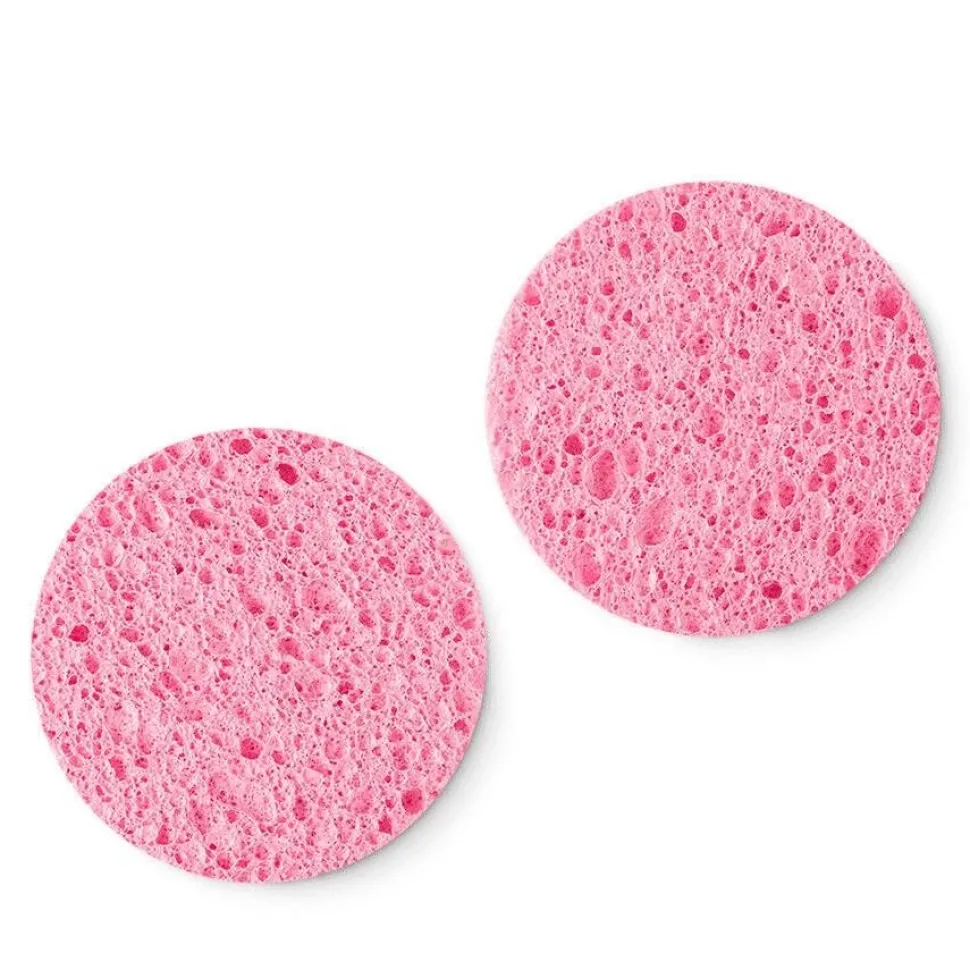 Zestaw dwóch gąbek, wykonanych z naturalnej celulozy i przeznaczonych do oczyszczania twarzy oraz usuwania maseczek do twarzy.