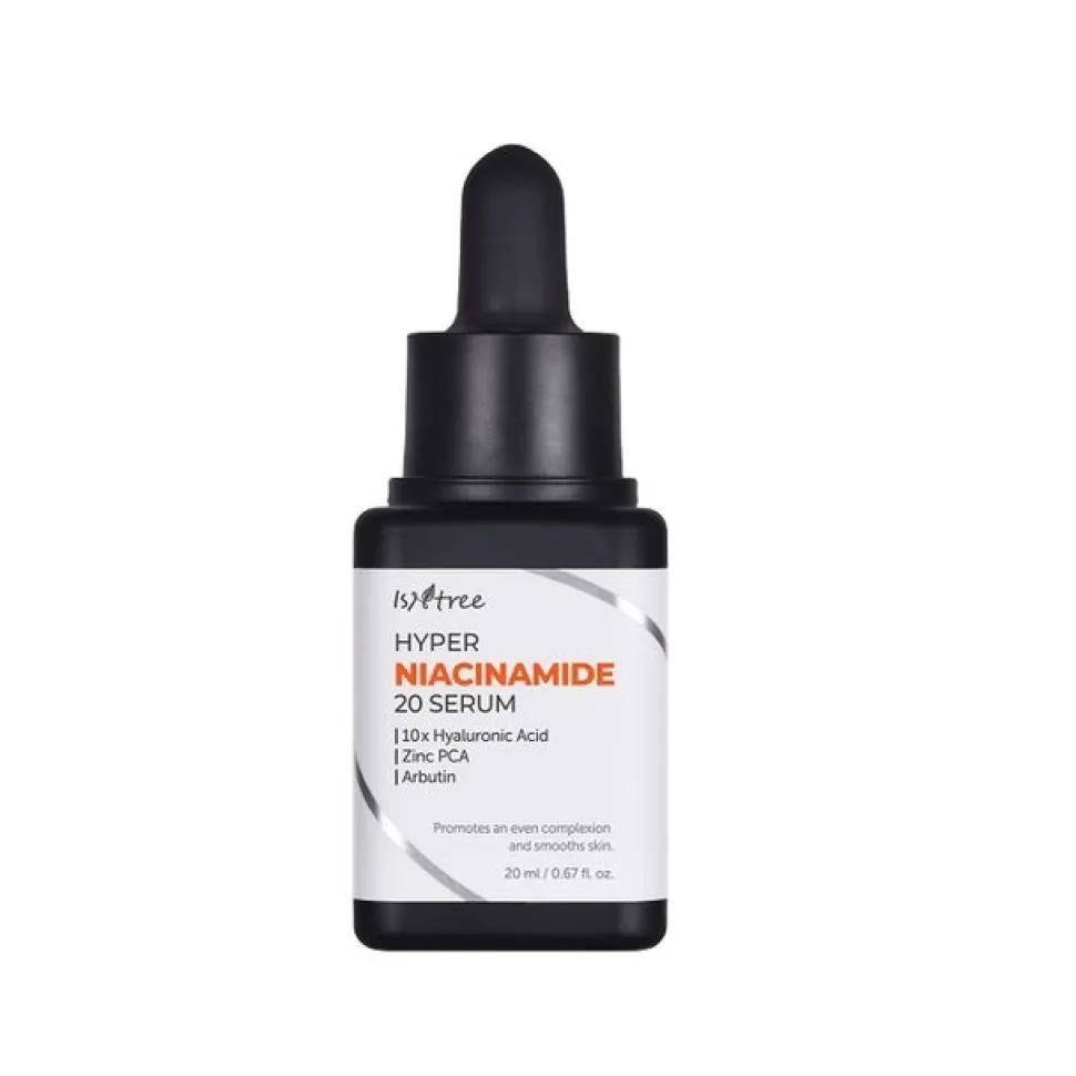 Isntree – Hyper Niacinamide 20 Serum – serum do twarzy, które działa przeciwzapalnie i rozjaśniająco. Zawiera 20% niacynamid, który wzmacnia barierę skórną, reguluje wydzielanie sebum, ma działanie antyoksydacyjne i przeciwzapalne. Cynk PCA zmniejsza podrażnienia oraz przeciwdziała powstawaniu stanów zapalnych. Ekstrakt z portulaki pospolitej rozjaśnia i łagodzi zaczerwienienia, a hialuronian sodu nawilża naskórek, wygładza go i uelastycznia. Serum ma lekką, nietłustą konsystencję, która szybko się wchłania, nie pozostawiając lepkiej ani tłustej warstwy na skórze.