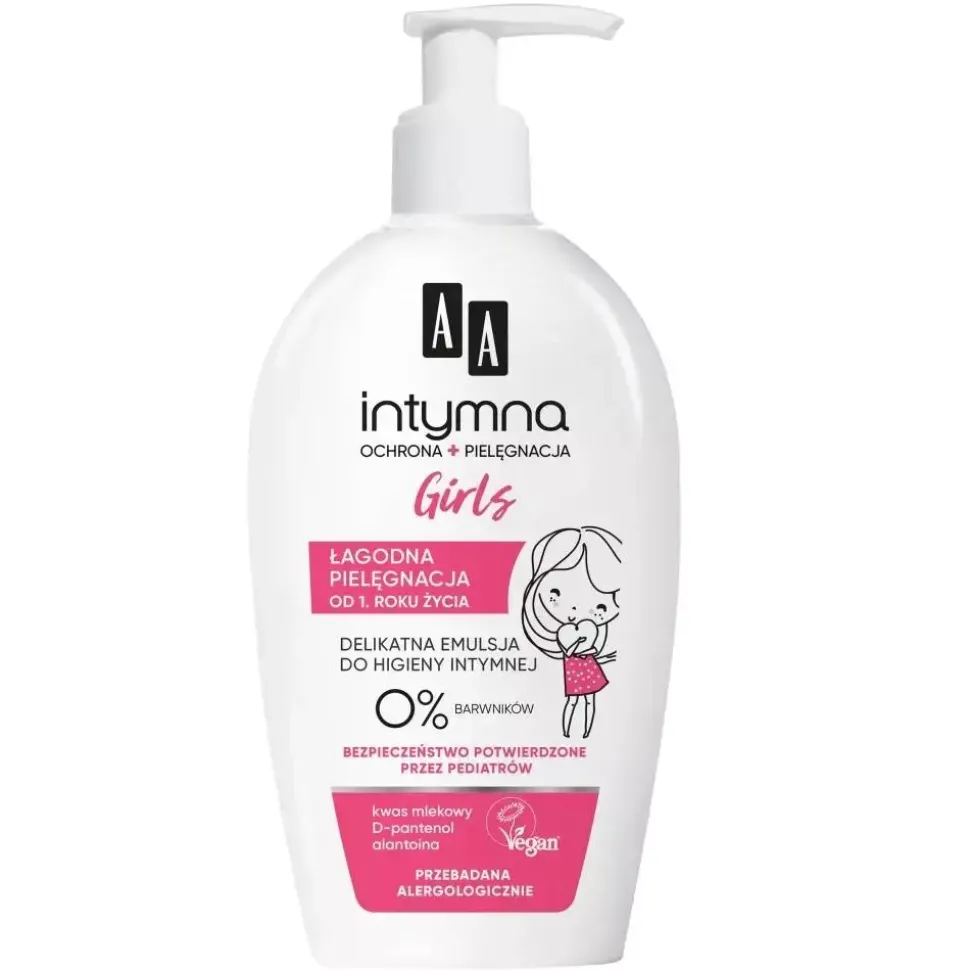 - Pierwsza Ochrona– Formułę emulsji opracowano z myślą o dziewczynkach od 1. roku życia. Kwas mlekowy zapewnia odpowiednie pH, przywracając naturalną mikroflorę bakteryjną.