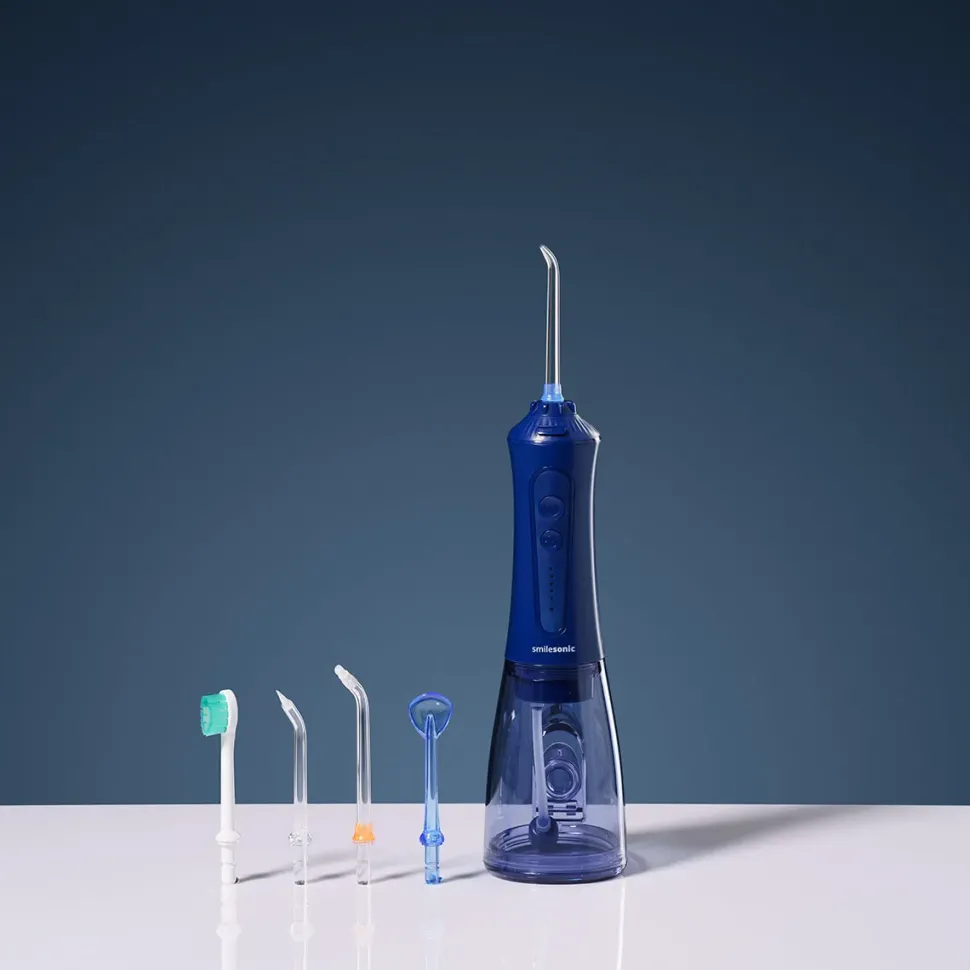Irygator bezprzewodowy Smilesonic AquaFlow to wysokiej klasy urządzenie stworzone do pielęgnacji przestrzeni międzyzębowych w pięciu trybach pracy, w których ciśnienie występuje w przedziale 2,75-7,6 bara. Jego istotną zaletą jest duży zbiornik na wodę, który nie wymaga uzupełniania podczas procesu irygacji. Irygator bezprzewodowy Smilesonic został również wyposażony w wydajny akumulator, który zapewnia nawet do dwóch tygodni pracy. Ponadto w zestawie z urządzeniem znajdziemy pięć różnych specjalistycznych końcówek oraz kabel ładowania USB wraz z adapterem. Produkt dostępny jest w czterech wersjach kolorystycznych: białej, czarnej, różowej lub granatowej.