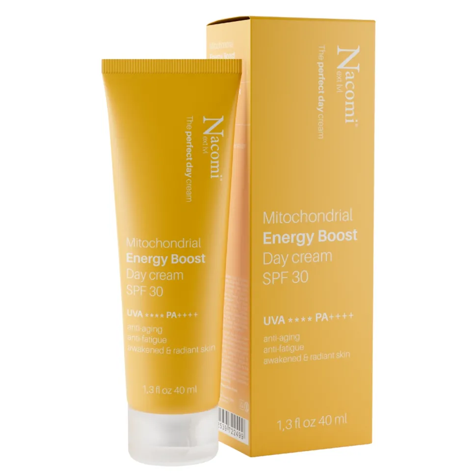 Mitochondrial Energy Boost SPF 30 zapewnia skuteczną ochronę przed promieniami UV, by Twoja skóra pozostała młoda i pełna energii. Wraz z upływem czasu, nasz zegar okołodobowy ulega rozregulowaniu, a funkcjonalność mitochondriów ulega pogorszeniu. Zawarty składnik Dawnergy™, poprzez modulacje genów zegarowych, działa stymulująco na skórę, przeciwdziałając związanemu z wiekiem spadkowi funkcji mitochondriów. Dzięki swoim właściwościom wspiera regenerację komórek, co prowadzi do redukcji oznak zmęczenia oraz zwiększenia blasku skóry. Dodatkowo przyczynia się do wzrostu syntezy kolagenu i elastyny, przez co skóra staje się bardziej elastyczna i jędrna. Redukuje widoczność zmarszczek o 15,4% oraz zwiększa rozświetlenie skóry o 3,5% już w 28dni*. Sprawia, że rankiem cera wygląda na promienną i wypoczętą, nawet po całonocnej imprezie.