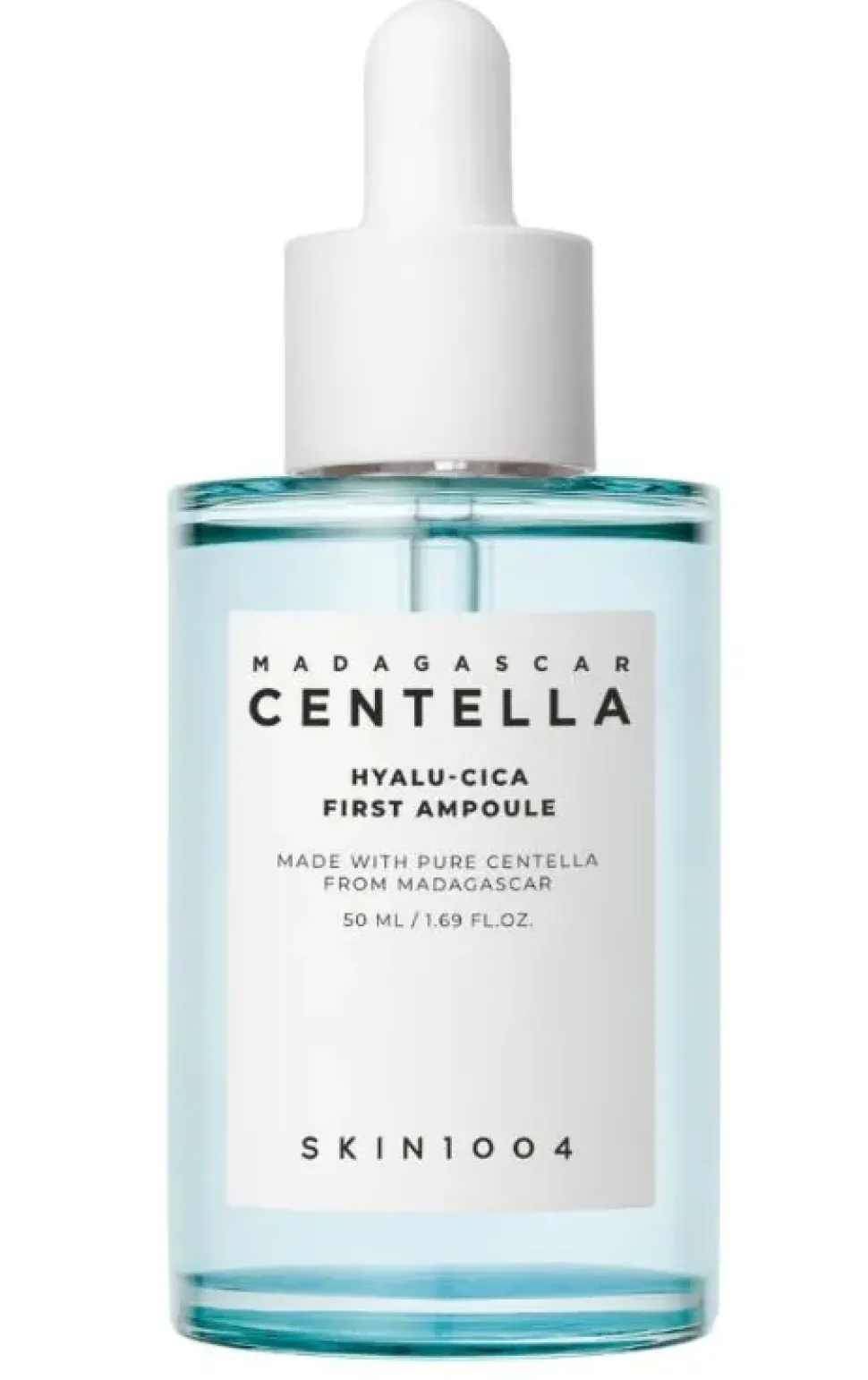 SKIN1004 Hyalu-Cica First Ampoule – to nawilżające serum, które natychmiast zwiększa poziom wilgoci w skórze, przygotowując ją do kolejnych etapów pielęgnacji. Dzięki unikalnemu kompleksowi Hyalu-Cica (kombinacji kwasu hialuronowego i wąkroty azjatyckiej), kosmetyk nie tylko intensywnie nawilża cerę, ale także odbudowuje jej naturalną barierę ochronną.