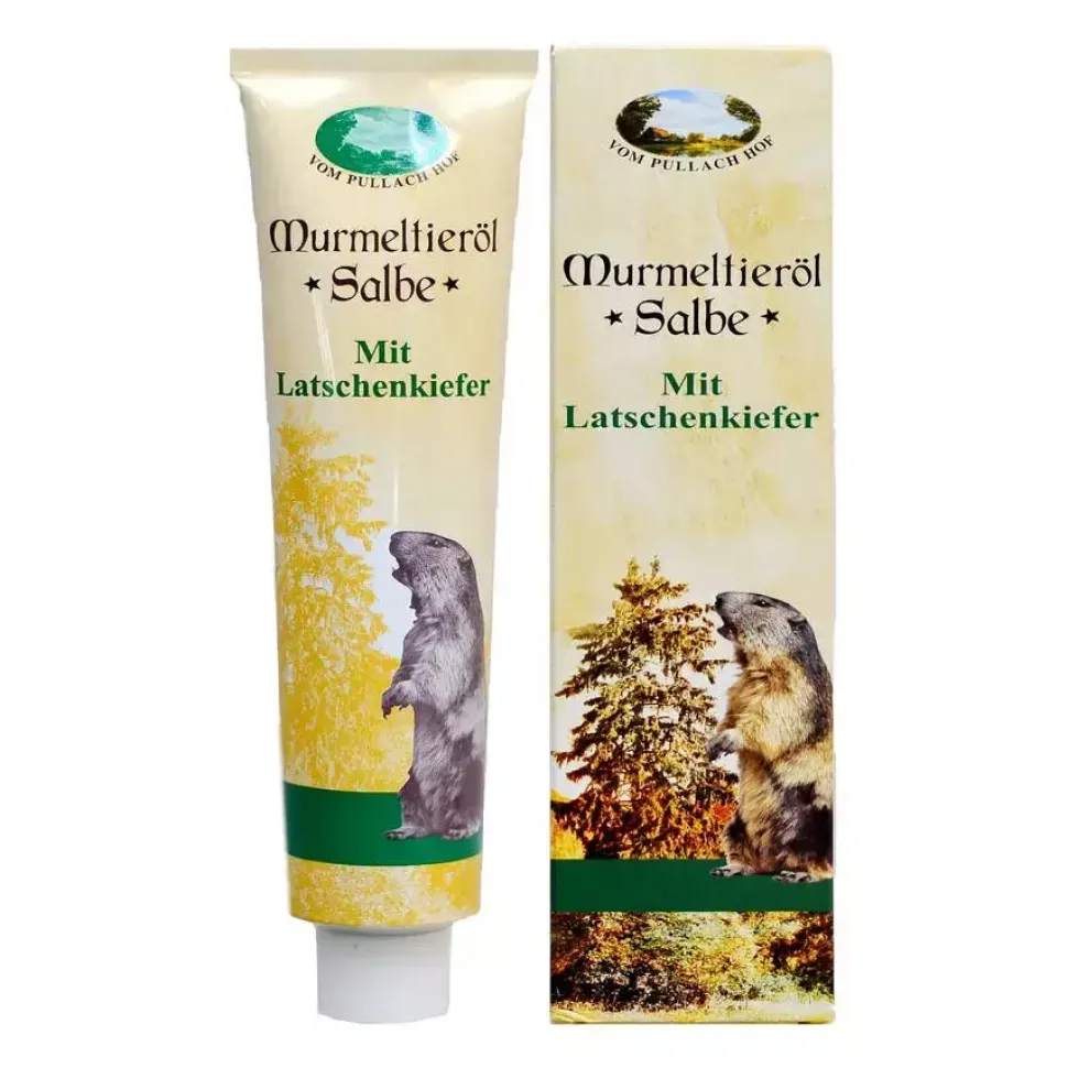 Pullach Hof Maść z sadłem świstaka Murmeltieröl Salbe oryginalny Niemiecki krem z dodatkiem wysokiej jakości sadła świstaka wraz z dodatkiem sosny górskiej.