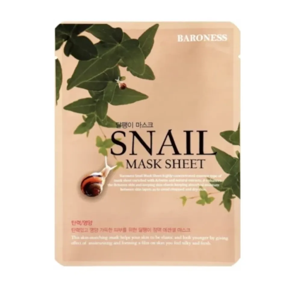 Maseczka do twarzy Baroness Snail Facial Mask jest bardzo odżywcza dla skóry i zawiera ekstrakt ze śluzu ślimaka, który wspomaga regenerację komórek skóry.