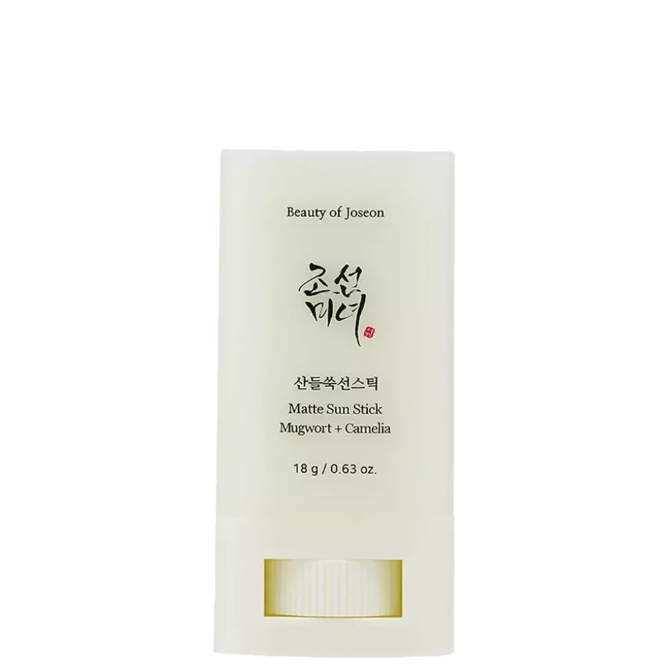 Beauty of Joseon – Matte Sun Stick Mugwort + Camelia SPF50/PA++++ – sztyft do twarzy i ciała z filtrami chemicznymi, który skutecznie chroni skórę przed szkodliwym działaniem promieniowania UVA i UVB. W składzie zawiera krzemionkę, dzięki czemu pochłania nadmiar sebum pozostawiając matowe wykończenie na skórze. Z kolei ekstrakt z wąkroty azjatyckiej łagodzi podrażnienia i zaczerwienienia. Produkt nie daje uczucia lepkości, przez co sprawdzi się pod makijaż. Posiada wygodną, kompaktową formę. Powstał ze składników pochodzenia naturalnego i jest odpowiedni dla wegan.