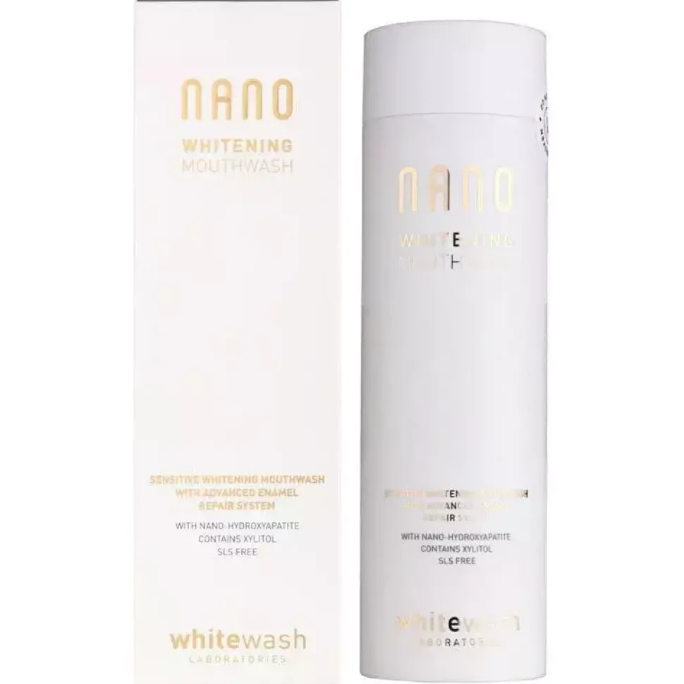 Płyn do płukania ust Nano Whitewash Whitening to produkt z luksusowej serii Nano WhiteWash, który powstał przy współpracy ze stomatologami z Wielkiej Brytanii. Specjalna formuła płynu oparta na technologii Enamel Repair Technology© zapewnia nieskazitelną higienę jamy ustnej także w miejscach trudno dostępnych. Remineralizuje, likwiduje przebarwienia, redukuje nadwrażliwość i poprawia stan zdrowia dziąseł.