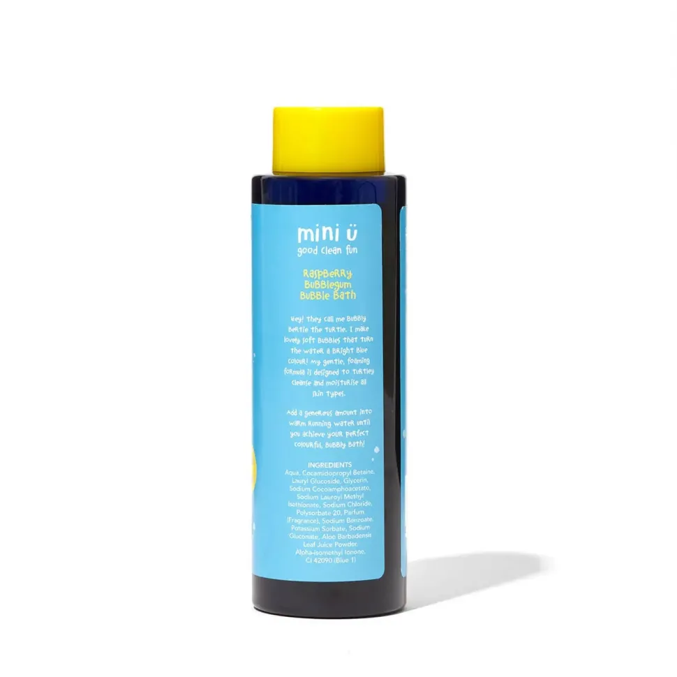 Bąbelkowy płyn do kąpieli Mini U dla dzieci i niemowląt zmienia kolor wody na niebieski i nadaje mnóstwo bąbelków. Ogromną frajdę da najmłodszym piana, przypominająca puszyste chmurki i niezwykły zapach malinowej gumy balonowej, a do tego wykonany jest z naturalnych i ultradelikatnych dla skóry składników. Z tym produktem już żadna kąpiel nie będzie nudna, a wanna zamieni się w miejsce doskonałej zabawy!