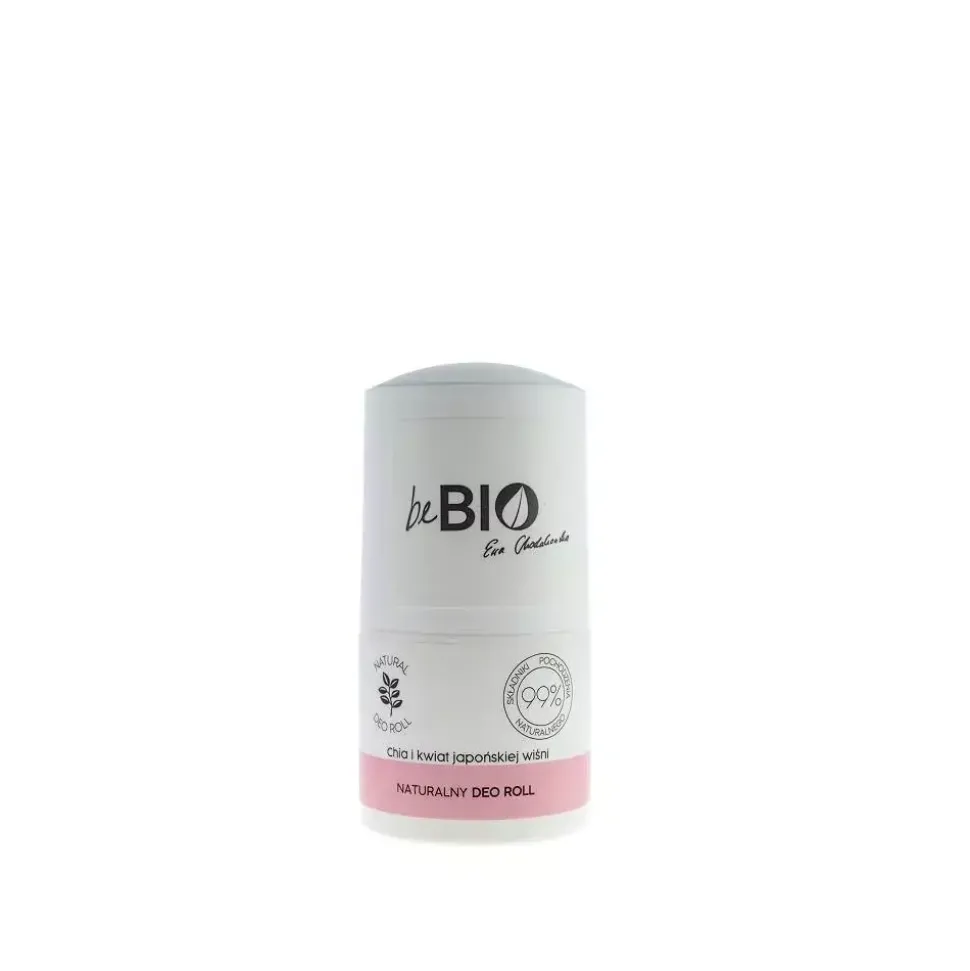 Naturalny deo roll-on CHIA I KWIAT JAPOŃSKIEJ WIŚNI na bazie naturalnego Ałunu z ekstraktem z nasion chia i kwiatu japońskiej wiśni zawiera 99,4% składników pochodzenia naturalnego. Dezodorant beBIO stworzony na bazie naturalnego minerału ałunu, który skutecznie zapobiega powstawaniu nieprzyjemnego zapachu. Ten produkt to dezodorant, a nie antyperspirant. Nie hamuje naturalnego i zdrowego procesu pocenia się, tylko zapobiega wydzielaniu się brzydkiego zapachu. Ałun ma działanie antybakteryjne. Dzięki temu, kiedy nakładamy dezodorant na skórę pod pachami, nie rozwiną się drobnoustroje. W ten sposób skutecznie zapobiegamy powstawaniu przykrego zapachu potu, który pochodzi właśnie od rozkładających się bakterii. Naturalny deo roll-on CHIA I KWIAT JAPOŃSKIEJ WIŚNI został wzbogacony ekstraktem z nasion chia i kwiatu japońskiej wiśni.