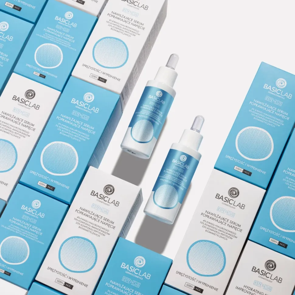 - 4% kwasu hialuronowego o różnych rozmiarach cząsteczek (ultranisko-, nisko-, wysokocząsteczkowego) nawadnia skórę na wielu poziomach, długotrwale podnosząc poziom nawilżenia i elastyczność naskórka. Natychmiastowo poprawia napięcie oraz redukuje widoczność drobnych zmarszczek, optycznie je wypełniając. Długofalowo wzmacnia barierę naskórkową, wpływając pozytywnie na spójność keratynocytów.