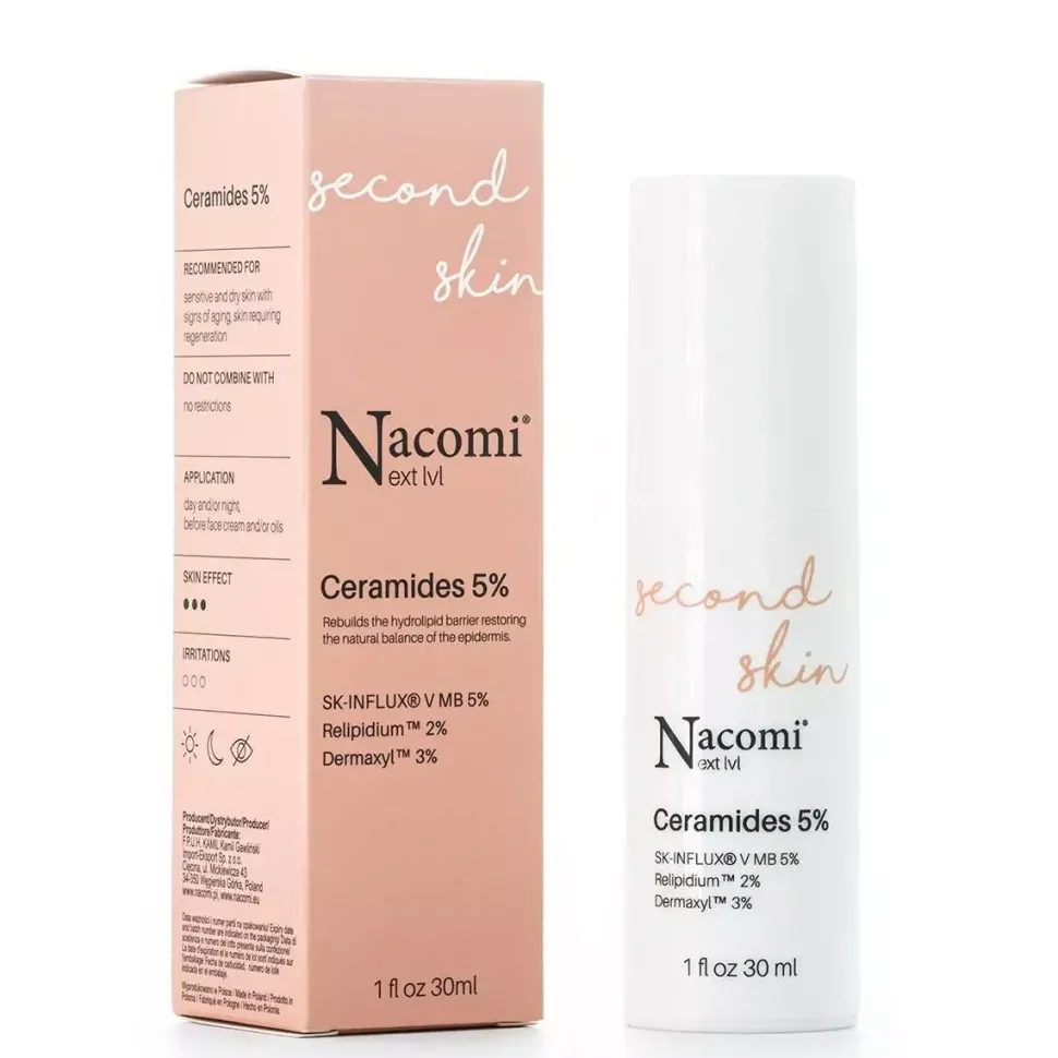 NACOMI NEXT LEVEL SERUM DO TWARZY CERAMIDES 5% to produkt idealny dla cery wymagającej głębokiego odżywienia. Zawiera peptydy i naturalne składniki aktywne. Serum do twarzy pomaga w odbudowie bariery lipidowej, wzmacnia skórę, a jednocześnie wycisza ewentualne stany zapalne na twarzy.