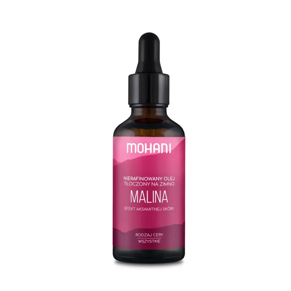 Olej z malin jest jednym z najcenniejszych naturalnych olejków. Posiada lekką konsystencję i dobrze się wchłania. Doskonale sprawdza się na cerze dojrzałej dzięki wysokiej zawartości odżywczych i odmładzających witamin oraz silnych antyoksydantów. Wyrównuje koloryt cery, niweluje przebarwienia, wygładza i nawilża skórę, ma działanie liftingujące.