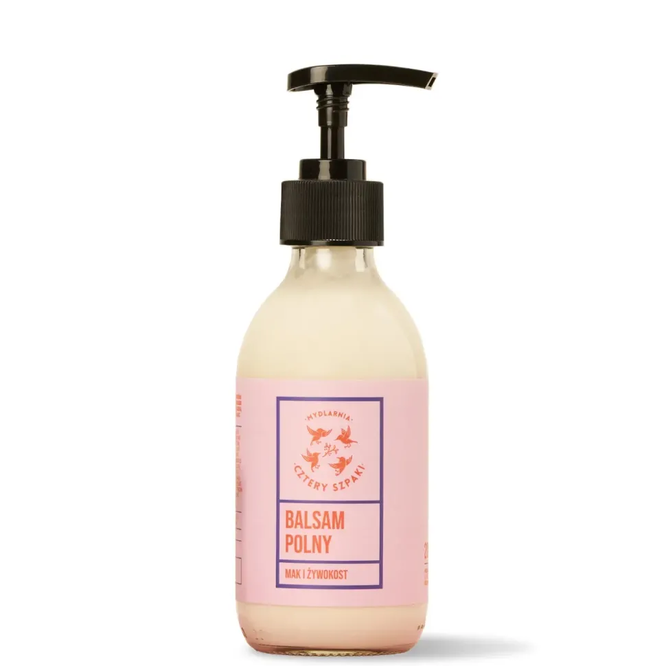 Balsam Polny bazuje na olejach (inaczej emolientach, natłuszczaczach) i ekstraktach (czyli wyciągach, esencjach). Oleje reprezentuje m.in olej słonecznikowy, olej rzepakowy, olej lniany, olej z wiesiołka, olej z ostropestu czy olej z maku. Ten ostatni znajduje się również w ekipie ekstraktów, w towarzystwie żywokostu oraz rumianku.