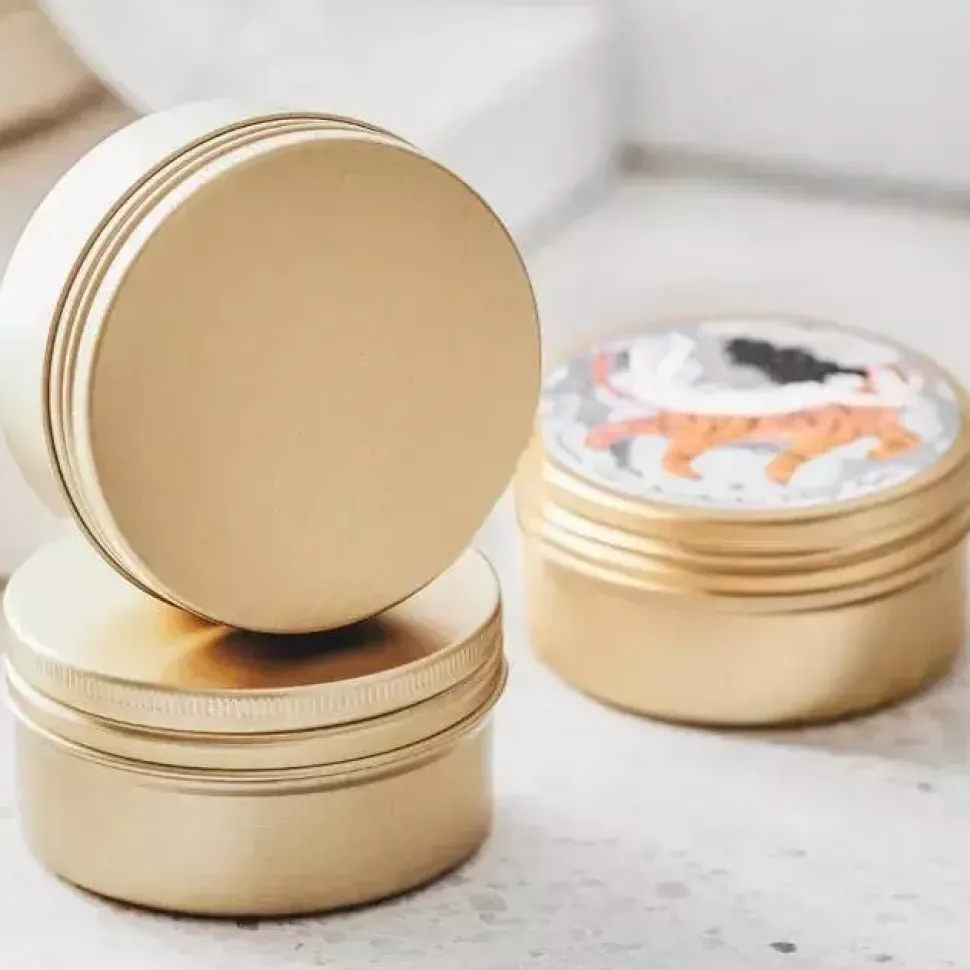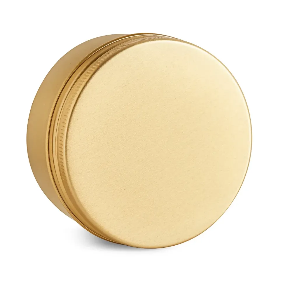 Złota, aluminiowa puszka do przechowywania i transportu szamponów w kostce, balsamów, podróżniczych wersji kosmetyków, czy biżuterii.