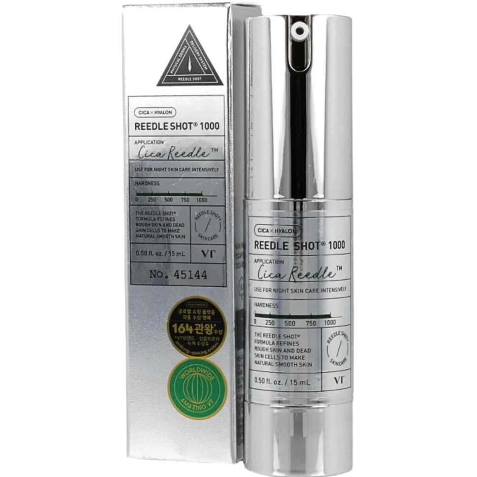 VT Cosmetics Reedle Shot 1000 to booster do głębokiej poprawy tekstury skóry, który intensywnie nawilża, regeneruje oraz wspomaga ujędrnienie. W składzie produktu znajduje się kompleks Cica Reedle™, którego cząsteczki są znacznie mniejsze od porów skórnych, co znacznie ułatwia wchłanianie składników i stymuluje regenerację skóry. Dzięki zawartości kwasu hialuronowego, adenozyny oraz składników roślinnych, takich jak aloes i olej jojoba, produkt poprawia elastyczność skóry, wygładza ją oraz przywraca zdrowy wygląd. Idealny dla skóry wymagającej rewitalizacji i poprawy tekstury.