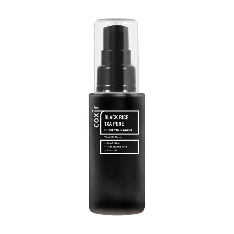 COXIR Black Rice TXA Pore Purifying Mask to głęboko oczyszczająca maska do twarzy, stworzona z myślą o skórze tłustej, mieszanej i skłonnej do zanieczyszczeń.
