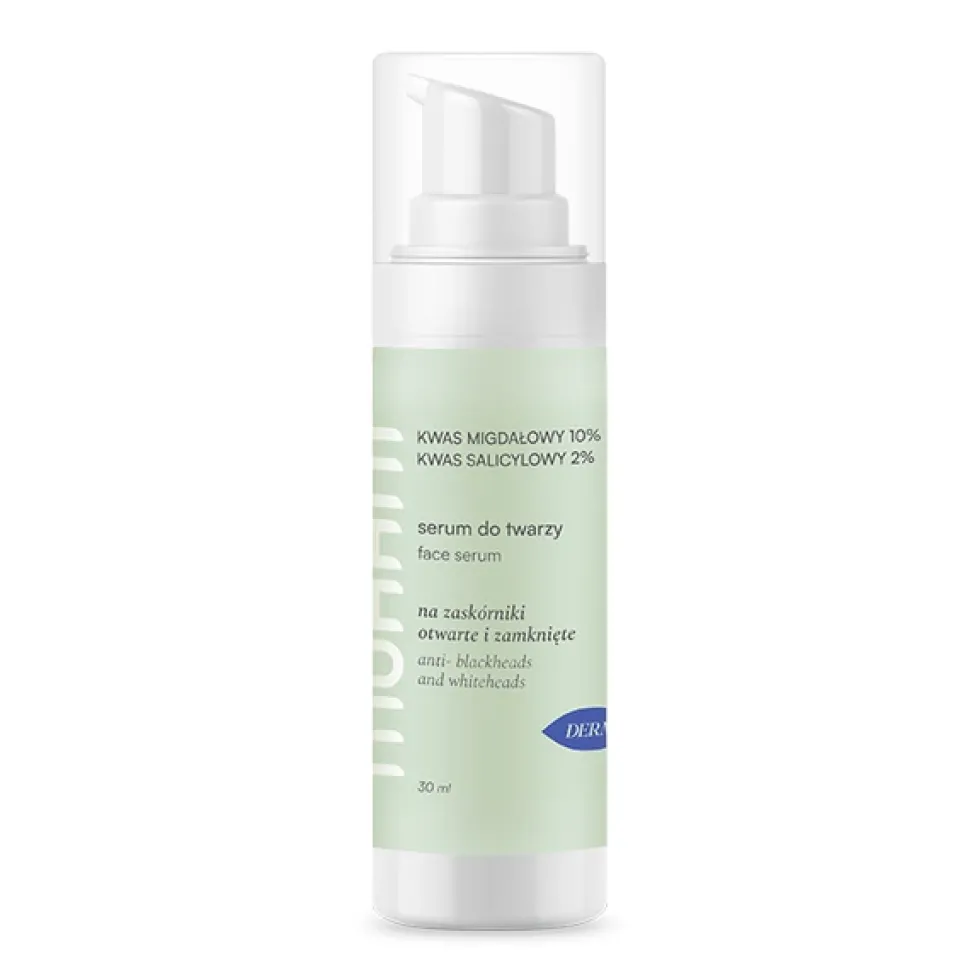 Wygładzające serum z kwasem migdałowym (10%) i kwasem salicylowym (2%) ma za zadanie delikatnie złuszczyć skórę. Zostało opracowane z myślą o cerach problematycznych, trądzikowych, a także skłonnych do przebarwień. Kwas migdałowy (AHA) ma właściwości nawilżające, depigmentacyjne i spowalnia proces fotostarzenia się skóry. Kwas salicylowy BHA działa przeciwzapalnie i wspomaga walkę z niedoskonałościami skóry. Niacynamid (wit. B3) zawarty w serum reguluje wydzielanie sebum, normalizuje cerę tłustą i mieszaną, a przy tym łagodzi podrażnienia. Ekstrakty z brzoskwini, malin i owoców jabłka potęgują działanie rozjaśniające i oczyszczające. Działają także przeciwstarzeniowo. Kwas hialuronowy nawilża i uelastycznia skórę.