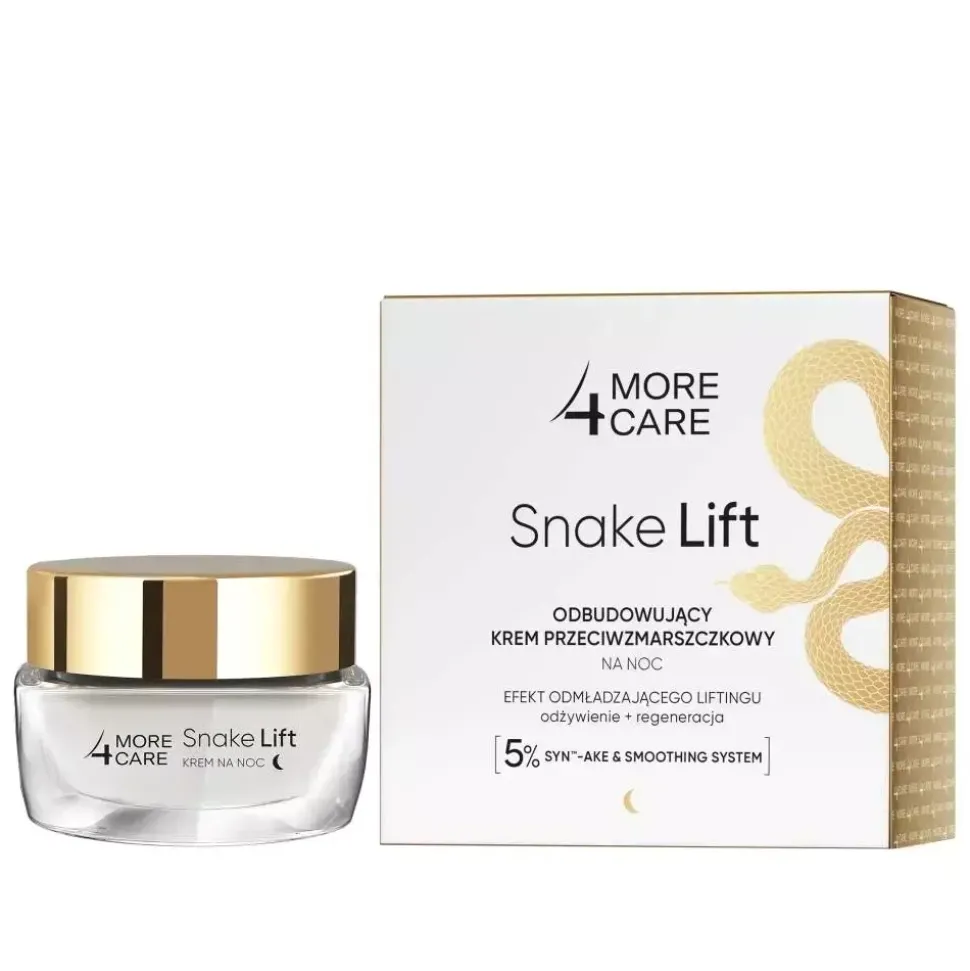 Odbudowujący krem przeciwzmarszczkowy Snake Lift to więcej niż krem na noc. To moc ampułki w kremie, która przynosi szybkie efekty odmłodzenia wyglądu skóry.