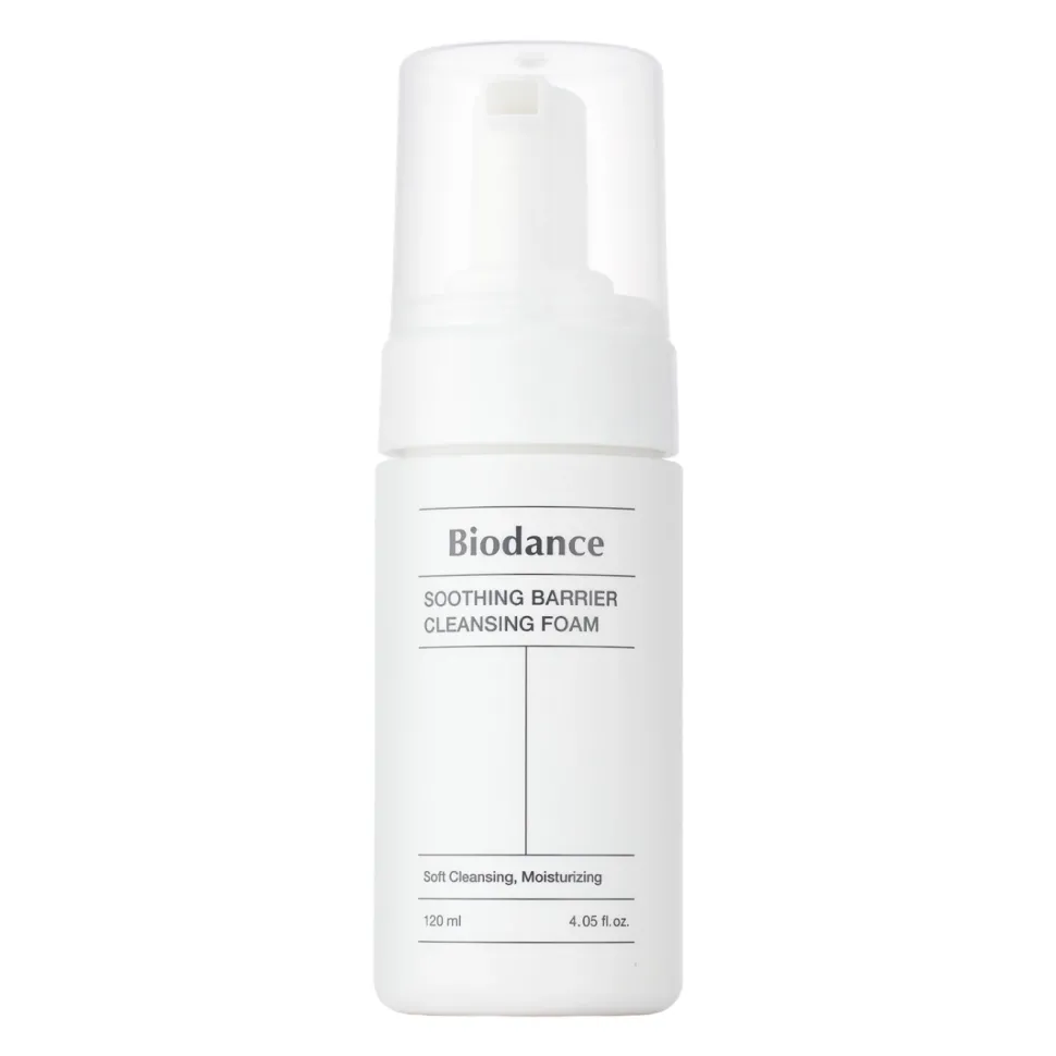Biodance – Soothing Barrier Cleansing Foam – delikatna pianka do mycia twarzy, która usuwa zanieczyszczenia bez pozostawienia na skórze uczucia ściągnięcia lub przesuszania. Tworzy gęstą, aksamitną pianę. Ma nawilżającą formułę, która łagodzi podrażnienia. W jej formule znajdziemy pantenol, który koi oraz wspomaga regenerację. Zastosowany kompleks cukrów roślinnych intensywnie nawilża i poprawia elastyczność, a ekstrakt z zielonej herbaty działa przeciwzapalnie i łagodząco. Produkt jest odpowiedni do każdego rodzaju cery, w tym suchej i wrażliwej.