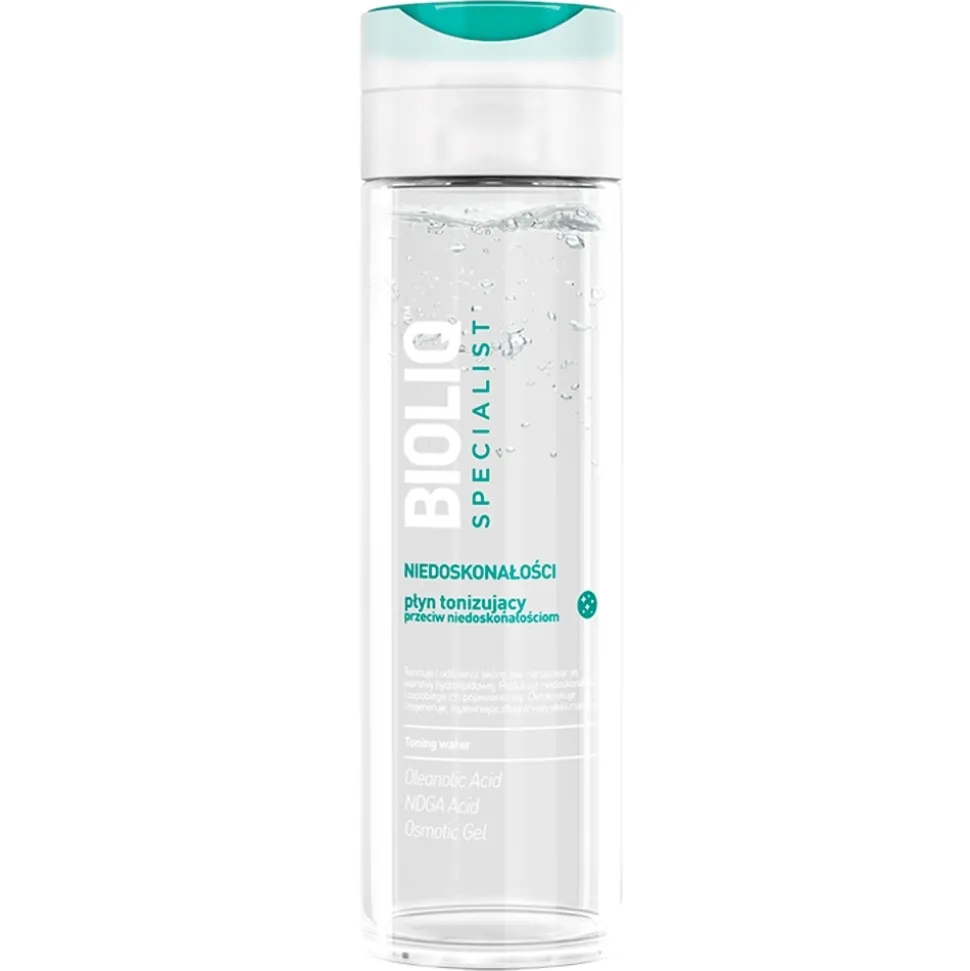 Płyn tonizujący przeciw niedoskonałościom skóry tonizuje i odświeża, nie naruszając jej hydrolipidowej warstwy ochronnej. Kwas oleanowy, kwas nordihydrogwajakowy i żel osmotyczny, sprawiają, że płyn zapewnia wszechstronną pielęgnację skóry z niedoskonałościami. Normalizuje wydzielanie sebum, redukuje niedoskonałości (wypryski, zaskórniki, wągry), odblokowuje i zwęża rozszerzone pory, zmniejszając ich widoczność. Ponadto wyciąg z wierzby białej detoksykuje skórę, oczyszczając ją z toksyn oraz działa złuszczająco. Wyciąg z liści aloesu posiada silne działania regeneracyjne i kojące. Płyn przyczynia się do poprawy struktury i jakości skóry oraz pozostawia ją matową przez długi czas. Hypoalergiczny. Bez parabenów. Bez alkoholu. Bez mydła. Przebadany dermatologicznie.
