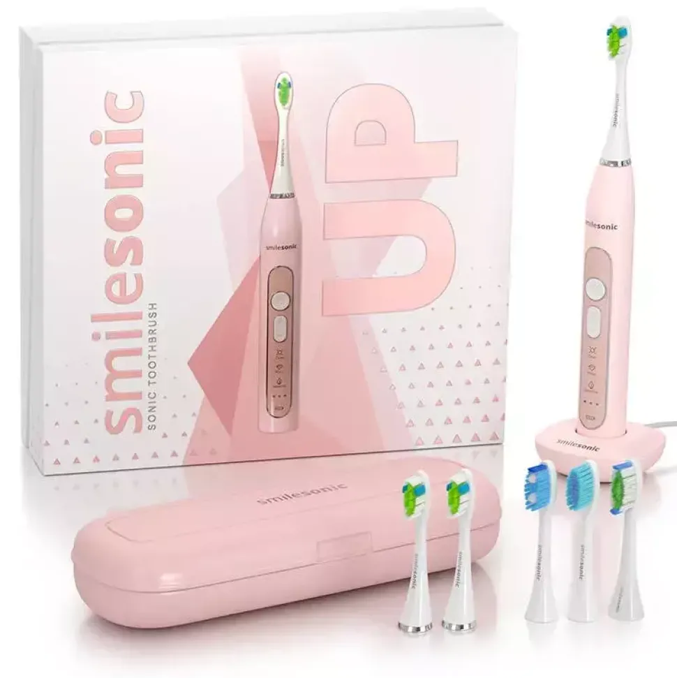 Szczoteczka Smilesonic UP to najwyższy model w rodzinie szczoteczek sonicznych Smilesonic. Urządzenie umożliwia użytkownikowi mycie zębów w jednym z trzech trybów pracy, a także korzystanie z jednego z trzech zakresów ruchów główki czyszczącej, co łącznie składa się na aż dziewięć różnych kombinacji czyszczenia. Maksymalna prędkość pracy szczoteczki również jest imponująca – to aż 96 000 ruchów na minutę. Wydajna bateria litowa, którą posiada szczoteczka soniczna Smilesonic UP na jednym naładowaniu potrafi wytrzymać do dwóch miesięcy, a do tego ładuje się tylko od 4 do 6 godzin. Zestaw ze szczoteczką obejmuje sześć głowic czyszczących oraz etui, umożliwiające bezpieczne i higieniczne korzystanie z urządzenia w podróży.