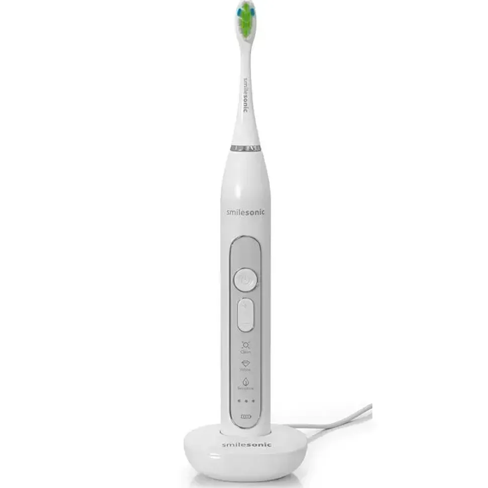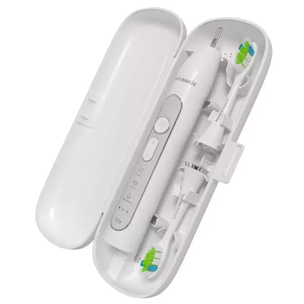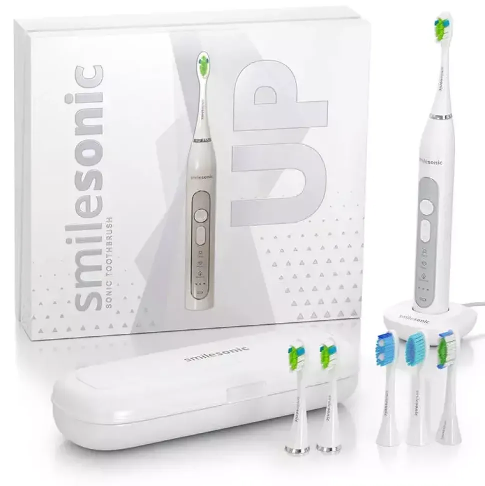 Szczoteczka Smilesonic UP to najwyższy model w rodzinie szczoteczek sonicznych Smilesonic. Urządzenie umożliwia użytkownikowi mycie zębów w jednym z trzech trybów pracy, a także korzystanie z jednego z trzech zakresów ruchów główki czyszczącej, co łącznie składa się na aż dziewięć różnych kombinacji czyszczenia. Maksymalna prędkość pracy szczoteczki również jest imponująca – to aż 96 000 ruchów na minutę. Wydajna bateria litowa, którą posiada szczoteczka soniczna Smilesonic UP na jednym naładowaniu potrafi wytrzymać do dwóch miesięcy, a do tego ładuje się tylko od 4 do 6 godzin. Zestaw ze szczoteczką obejmuje sześć głowic czyszczących oraz etui, umożliwiające bezpieczne i higieniczne korzystanie z urządzenia w podróży.