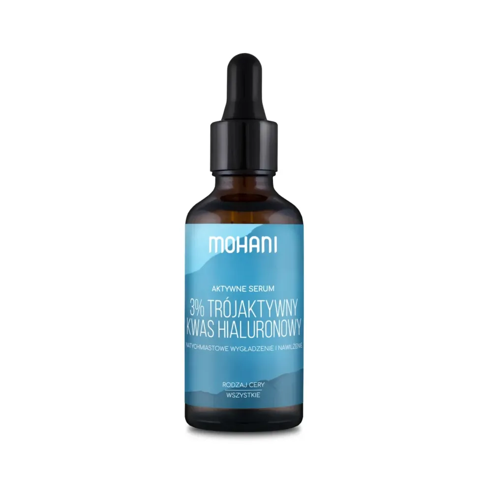 Trójaktywny kwas hialuronowy 3% polecany jest dla osób, których skóra jest bardzo sucha, zwiotczała na skutek odwodnienia, pokryta zmarszczkami i widocznymi oznakami starzenia (warto stosować wokół oczu, ust, na czoło i dekolt). Trójaktywny kwas hialuronowy to także naturalne, skuteczne rozwiązanie dla osób o skórze wrażliwej, ze skłonnością do podrażnień, wymagającej regeneracji. Wzmacnia barierę ochronną skóry.