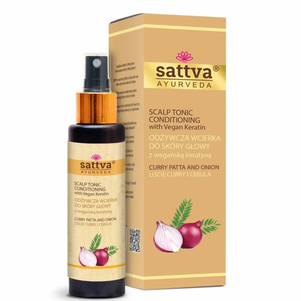Liście curry zawierają witaminę C, witaminę B, białka i przeciwutleniacze, które promują wzrost włosów i odnowę skóry głowy. Ekstrakt z cebuli pomaga odżywić włosy i zapobiega ich wypadaniu. Delikatny masaż może poprawić krążenie skóry głowy i zdrowy wzrost włosów.