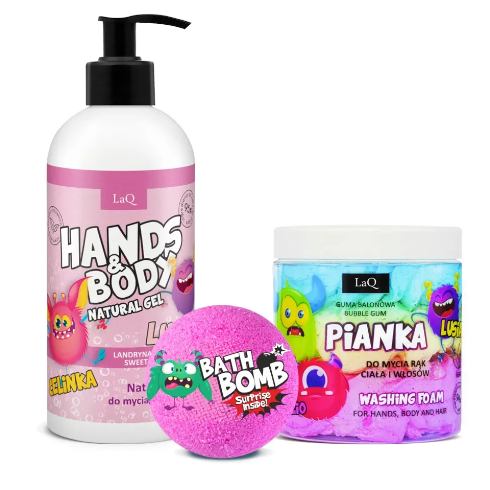 Oto ja, czyli wegański zestaw kosmetyków naturalnych dla dziecka, składający się z żelu do mycia, 3-kolorowej pianki do mycia oraz musującej kuli do kąpieli. Seria ta ma odlotowy zapach gumy balonowej oraz marakui. Stworzyliśmy ją specjalnie dla dzieci, z myślą o ich delikatnej skórze i miłości do kolorów.