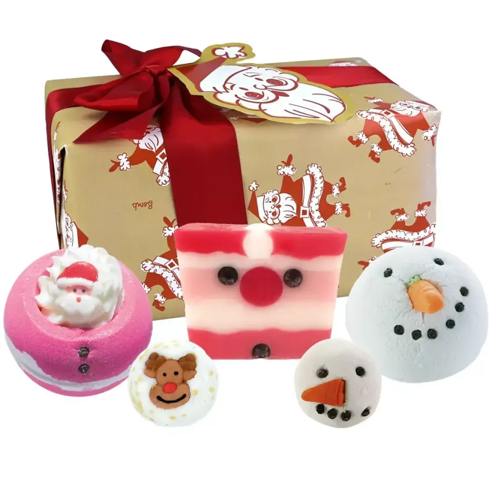 Cóż, wygląda na to, że ten zestaw wypadł prosto z worka Świętego Mikołaja! Wewnątrz wypełnionyjest pełnią radosnych zapachów i olejków eterycznych, wykończonych dużą czerwoną kokardką imetką Świętego Mikołaja.