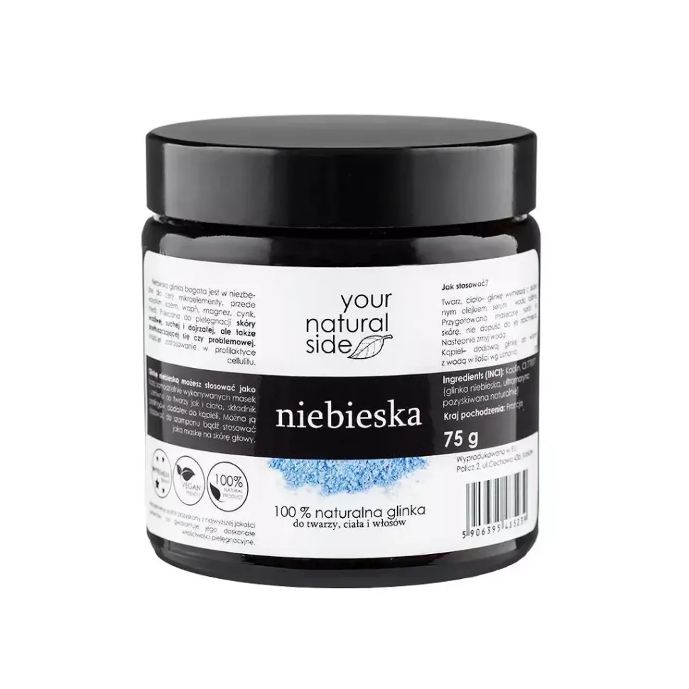 - Nazwa surowca wg. INCI: Blue Kaolin Clay; (Glinka niebieska)