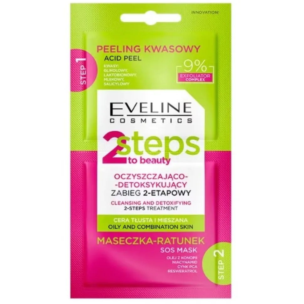 Oczyszczająco-detoksykujący zabieg 2-etapowy 2 Steps to Beauty to idealne rozwiązanie dla osób zmagających się z problemami skóry tłustej i mieszanej. Ten dwustopniowy zabieg delikatnie złuszcza martwy naskórek, przywraca skórze blask, a następnie intensywnie regeneruje i nawilża. Peeling kwasowy skutecznie oczyszcza pory, przygotowując cerę na działanie maseczki ratunkowej, która świetnie ją odżywia.