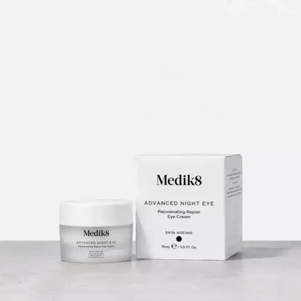 Odśwież zmęczoną skórę wokół oczu z Advanced Night Eye. Ten bogaty, szybko wchłaniający się krem nawilża skórę gdy śpisz, dla wspaniałego efektu po przebudzeniu. Wzmocniony bogactwem silnych przeciwutleniaczy, Advanced Night Eye natychmiastowo wchłania się w skórę dla głębokiego nawilżenia i wygładzenia wrażliwego obszaru wokół oczu. Kompleks Medik8 Midnight Repair zawierający moc płynącą ze smoczego owocu oraz świdośliwy olcholistnej, neutralizuje szkodliwe działanie wolnych rodników. Krem pomaga zapobiegać pojawianiu się oznak przedwczesnego starzenia się. Dzięki zawartości Matrixylu 3000, kombinacji peptydów – krem stymuluje produkcję kolagenu w celu ujędrnienia skóry. Kofeina i hesperydyna wspomagają krążenie dla zniwelowania cieni pod oczami. Delikatna skóra wokół oczu jest wyraźnie odmłodzona, zregenerowana i gładka. Krem może być stosowany w połączeniu z Retinol Eye TR, dla wzmocnienia działania przeciwstarzeniowego.