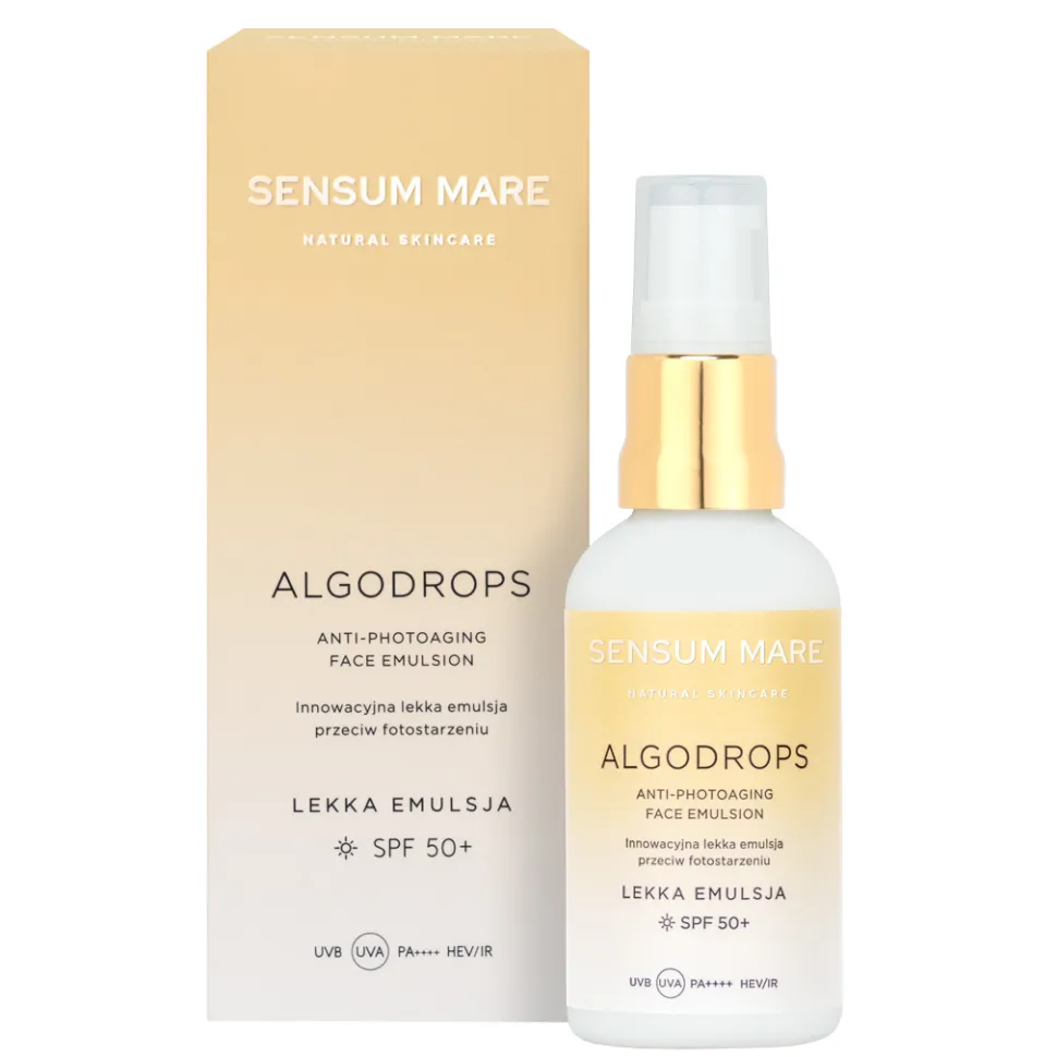 Zadbaj o młodzieńczy blask swojej skóry z Sensum Mare ALGODROPS! Jest to innowacyjna lekka emulsja ochronna, której głównym zadaniem jest troska o Twoją cerę. Jeśli marzysz o skórze zawsze promiennej i chronionej przed niekorzystnymi czynnikami zewnętrznymi, to jest to produkt właśnie dla Ciebie!