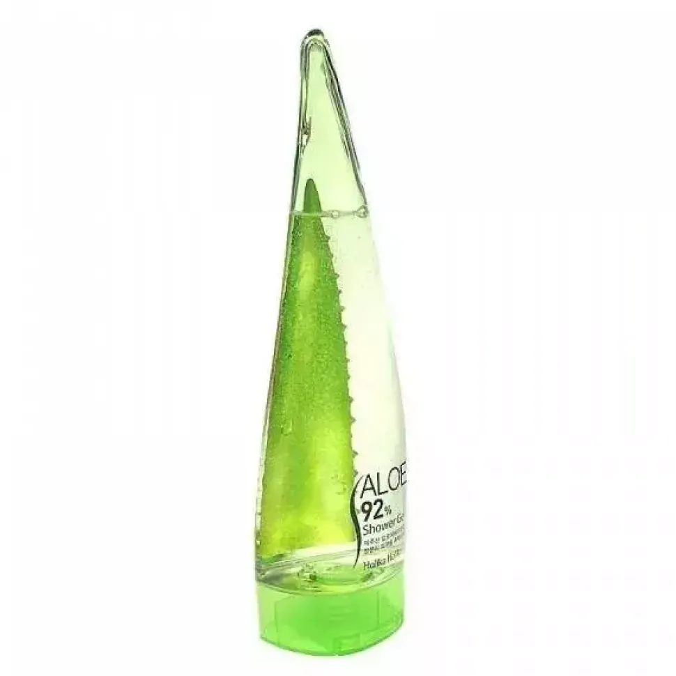 Holika Holika Aloe 92% Shower Gel – Delikatny żel pod prysznic z 92% zawartością soku z aloesu. Żel dokładnie oczyszcza ciało. Przynosi efekt nawilżenia i odświeżenia dzięki wysokiej zawartości soku z Aloesu, który pochodzi z czystej wyspy Jeju w Korei Południowej. Czysty i świeży sok z liści aloesu jest uzyskany w procesie fermentacji przy użyciu grzybów. Dzięki temu żel jest jeszcze bardziej naturalny bez zbędnych konserwantów i daje jeszcze większy efekt łagodzący dla skóry. Produkt dokładnie czyści skórę z wszelkich zabrudzeń, nawilża i odświeża. Wspaniale się pieni i posiada delikatny zapach. Koreański żel aloesowy pod prysznic jest przeznaczony do każdego rodzaju skóry. Nadaje się również do skóry wrażliwej i podrażnionej. Nie zawiera parabenów, olejów mineralnych, sztucznych barwników oraz składników pochodzenia zwierzęcego.