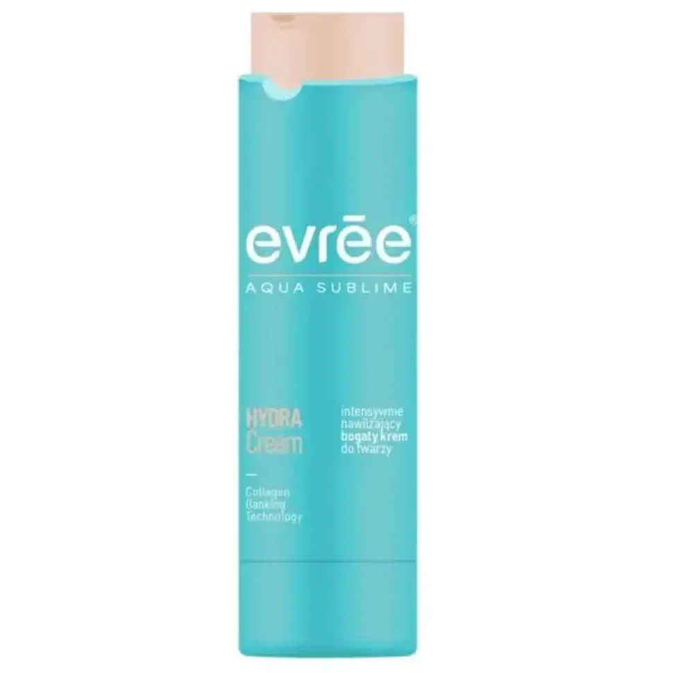 Evree Aqua Sublime Hydra Cream Intensywnie nawilżający bogaty krem do twarzy Powstał z myślą o cerze potrzebującej regeneracji, ochrony i dogłębnego odżywienia. To świadoma pielęgnacja oparta na skutecznych składnikach aktywnych i filozofii wspierania naturalnych procesów skóry – bez cudów, trików i chwilowych efektów. Krem działa długofalowo, wzmacniając barierę hydrolipidową, odbudowując strukturę skóry i wspierając jej młody wygląd w duchu trendu Collagen Banking.