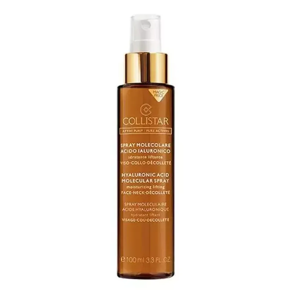 Attivi Puri Spray Molecolare Hyaluronic Acid od Collistar to luksusowy spray do twarzy o działaniu nawilżającym. Wygładza, wzmacnia skórę i redukuje oznaki starzenia. Odświeża i przedłuża trwałość makijażu. Na bazie naturalnego kwasu hialuronowego.