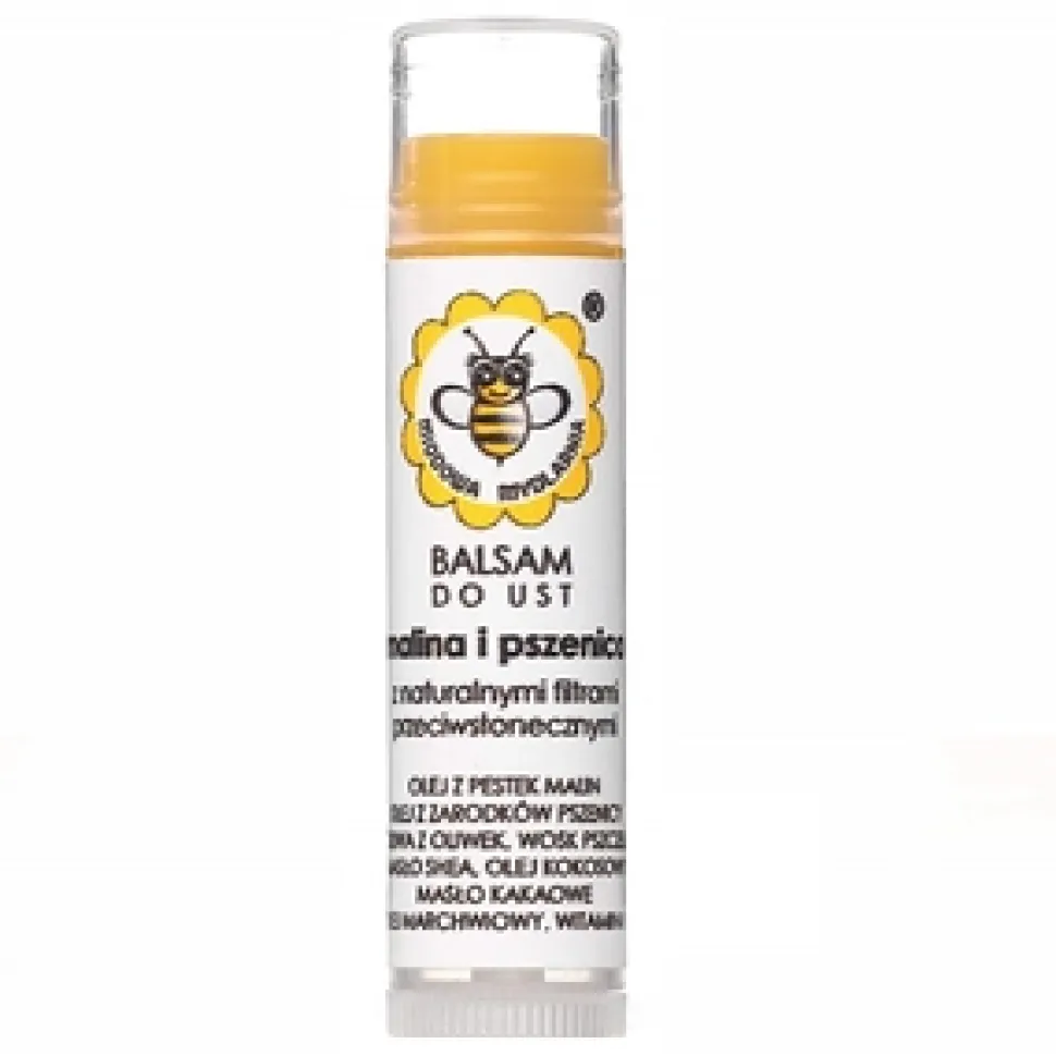 Balsam nawilży i delikatnie natłuści usta, nawet te mocno spierzchnięte, ochroni przed wysuszeniem, uelastyczni i zmiękczy, pomoże w gojeniu się ranek, nada ustom połysk – wszystko to dzięki zawartości innych składników, w które balsam został wzbogacony: oliwa z oliwek, masło shea, olej kokosowy, masło kakaowe, witamina E. Balsam zawiera oczywiście również dobroczynny wosk pszczeli.