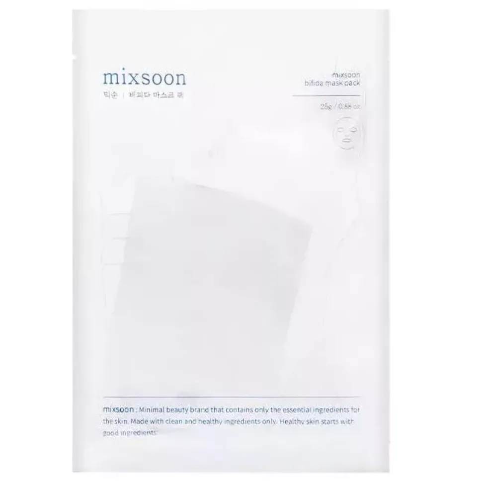 Mixsoon – Bifida Mask Pack – zestaw 5 masek w płachcie o działaniu nawilżająco-łagodzącym. Zostały wykonane z przyjemnego materiału, który dobrze przylega do skóry. Zawierają cenne fermenty, które wzmacniają barierę ochronną oraz regulują wydzielanie sebum. Dzięki dodatkowi pantenolu i alantoiny produkt doskonale łagodzi podrażnienia i zaczerwienienia. Hialuronian sodu zapewnia intensywne nawilżenie skóry. Formuła produktu jest wegańska.
