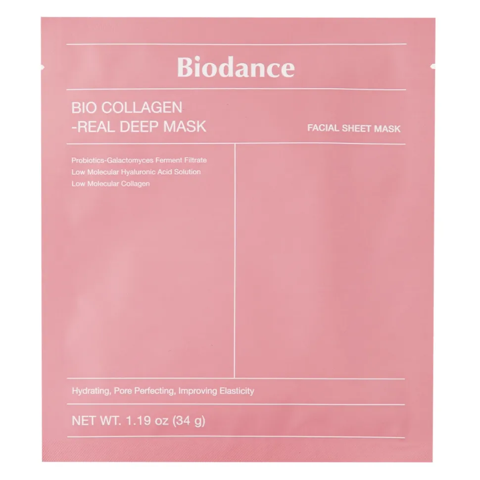 Biodance – Bio-Collagen Real Deep Mask to hydrożelowa maseczka do twarzy, składająca się z dwóch części, przeznaczona na dolną i górną partię twarzy. Idealna do stosowania na całą noc lub przez co najmniej 3-4 godziny, maseczka intensywnie nawilża skórę i poprawia jej elastyczność.