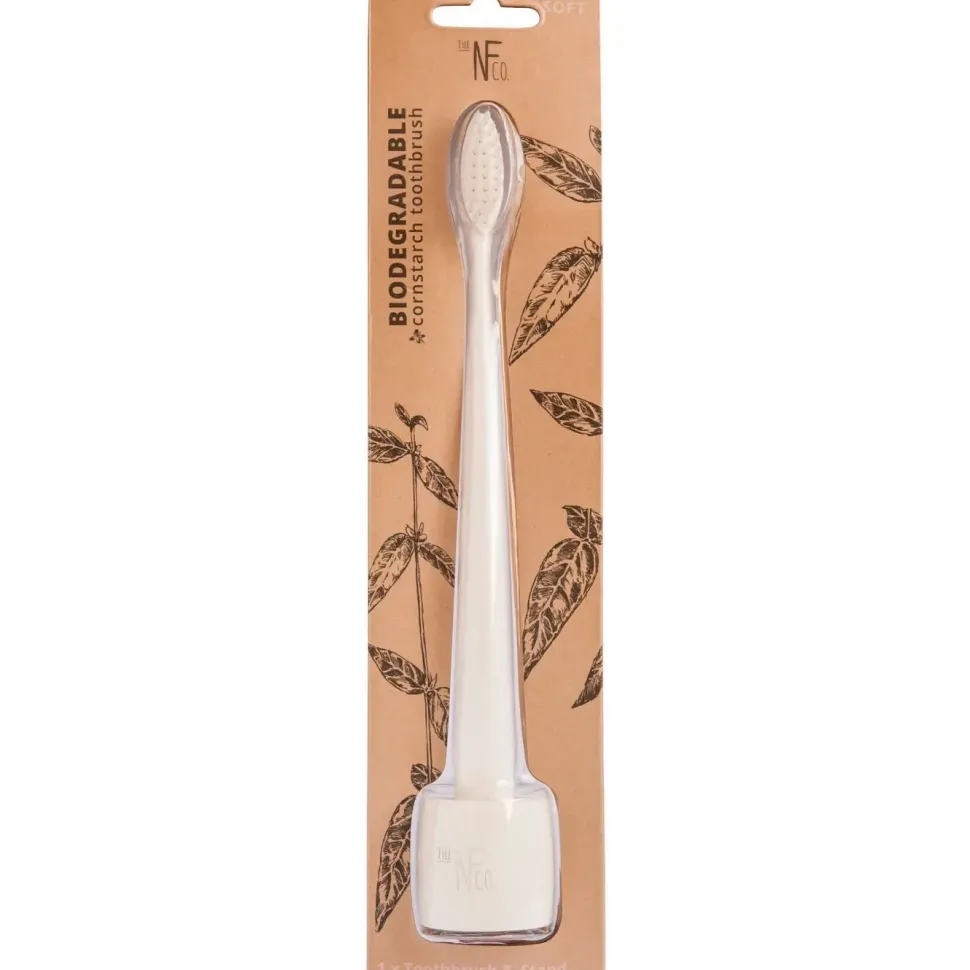 Biodegradowalna szczoteczka do zębów o miękkim włosiu, idealna dla osób z krwawiącymi dziąsłami oraz noszących aparat stały. Włosie wykonane nylonu – bardzo delikatne i cienkie dla lepszej penetracji między zębami. Ergonomiczna rączka w 100% z włókien kukurydzianych (non-GMO). Nie zawiera BPA! Opakowanie biodegradowalne.