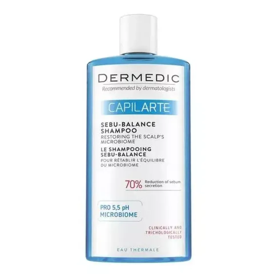 Dermedic Capilarte Sebu-Balance to wyrób medyczny w postaci szamponu do włosów, który pomaga przywrócić równowagę mikrobiomu skóry. Przeznaczony jest dla osób, które zmagają się z problemem nadmiernie przetłuszczających się włosów.