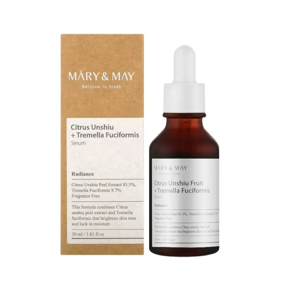 Mary&May Citrus Unshiu + Tremella Fuciformis Serum to intensywnie nawilżające i rozjaśniające serum, które wspomaga naturalne procesy regeneracyjne skóry, przywracając jej blask i jednolity koloryt. Formuła produktu oparta jest na ekstraktach roślinnych i substancjach aktywnych, które skutecznie nawilżają, odżywiają i chronią skórę przed szkodliwymi czynnikami zewnętrznymi. Serum jest odpowiednie dla wszystkich typów cery, szczególnie dla skóry suchej, zmęczonej i z nierównomiernym kolorytem.
